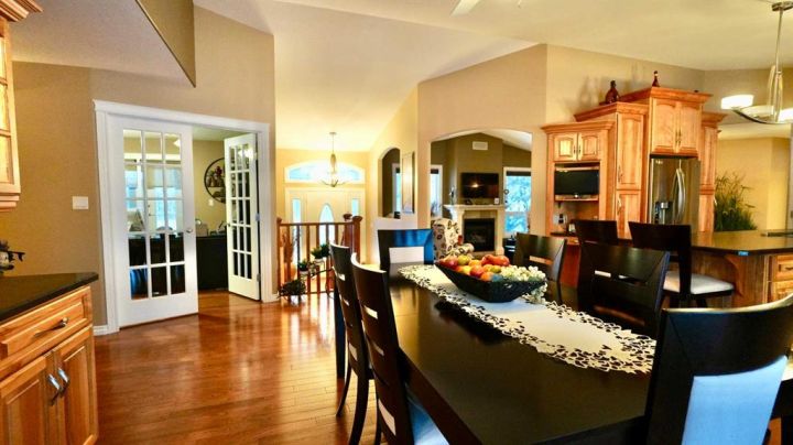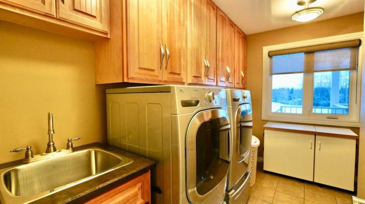 Private Riverfront Retreat on 15 Acres – A Custom-Built Masterpiece! Welcome to your own private oasis nestled among the trees and overlooking the tranquil Heart River. This exceptional 15-acre property offers unmatched privacy, peace, and natural beauty — the perfect blend of luxury living and country serenity. Every detail of this custom-built home was carefully designed with quality and comfort in mind. No expense was spared, and only the finest materials were used throughout. With over two fully finished levels, the stunning floorplan features 5 spacious bedrooms and 4 beautifully appointed bathrooms, offering room for family, guests, and flexibility for multi-generational living. Step inside to find rich ash hardwood floors and a warm, inviting atmosphere that instantly feels like home. The custom birch kitchen is a chef’s dream — thoughtfully designed with generous storage, high-end finishes, and ample space to gather and create. Enjoy family meals in the expansive dining room with built-ins or unwind in the cozy living room, where a beautiful fireplace anchors the space and adds to the home’s charm. The primary suite is a private retreat of its own, featuring a luxurious ensuite complete with a large soaker tub — the ideal place to relax after a long day. The fully finished walkout basement expands your living space with abundant natural light, a second laundry area, and incredible flexibility to accommodate extended family, caregivers, or even a separate living area. Comfort and convenience are at the forefront here, with in-floor heating, air conditioning, and a top-of-the-line heating system ensuring year-round comfort. A large attached garage offers plenty of space for vehicles, hobbies, and storage, while a separate shop site with its own access road to the north provides the perfect setup for those wanting to operate a business from home. Lovingly maintained and immaculately cared for, this property is truly move-in ready — offering the rare combination of craftsmanship, privacy, and versatility that’s hard to find. Don’t miss the opportunity to own this one-of-a-kind property where elegance meets the peace of country living. Schedule your private showing today and experience all that this exceptional home has to offer.