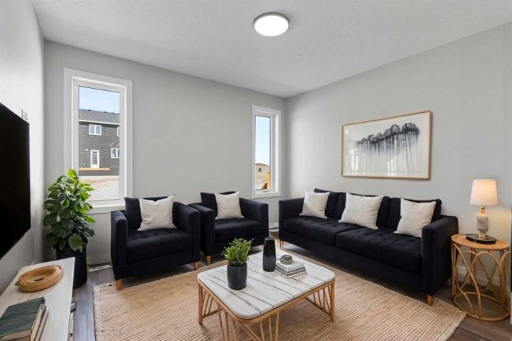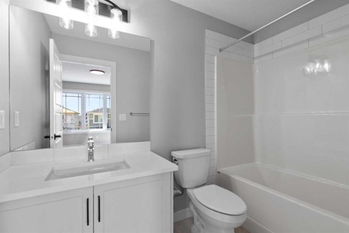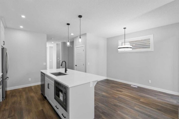 Located within the popular new NW community of Ambleton, this fabulous Brand New Home is sure to impress. 9 Foot Ceilings and Luxurious Vinyl Plank Flooring sprawls through the Front Entrance into the Open Concept Kitchen, Dining and Living Room as well as the east facing flex room on the Main Floor. QUARTZ countertops, Stainless Steel Appliances, GAS STOVE, FULL CEILING HEIGHT Cabinetry with Crown Molding and a glass door Pantry Closet complete the modern Kitchen. A Spacious Dining Room and Living Room are great for Relaxing or Entertaining in. The upstairs features a center Bonus Room that Separates the Kids Rooms from the Parents' Master Bedroom. Plush Carpets cushion your Toes and Feet on the Upper Floor and Oversized Windows allow Sunshine to Beam into every room. There is a shared 4 Piece Bathroom and a large laundry room on this level as well. The Master/Primary Bedroom is Gigantic and can accommodate a King Size Bed with Night Tables and a Dresser or Two. There is also a walk-in Closet with a large window and a 4 Piece Ensuite Bathroom that completes this suite. Heading downstairs to the undeveloped basement, the Separate Entrance, 9 foot Ceilings, second Furnace, second Washer & Dryer Rough-ins, Bathroom Rough-Ins, Kitchen Rough-ins are conveniently placed for a future two bedroom basement development. The backyard comes with a double car parking pad, which can accommodate a future double detached garage. This west backyard amazing home is also conveniently located cross a playground, minutes away from the schools, public transit and amenities, including Carrington Shopping Center, Creekside Shopping Center, Walmart, Beacon Hill Costco, and T&T Asian Supermarket. It also has quick access to the Stoney Trail Highway and the Deerfoot Highway. Whether you want to Live Up and Rent Down, lease out the entire house, or live with multiple generations, this is the perfect home for you. Don't miss out on this gorgeous home! Book your showings today!