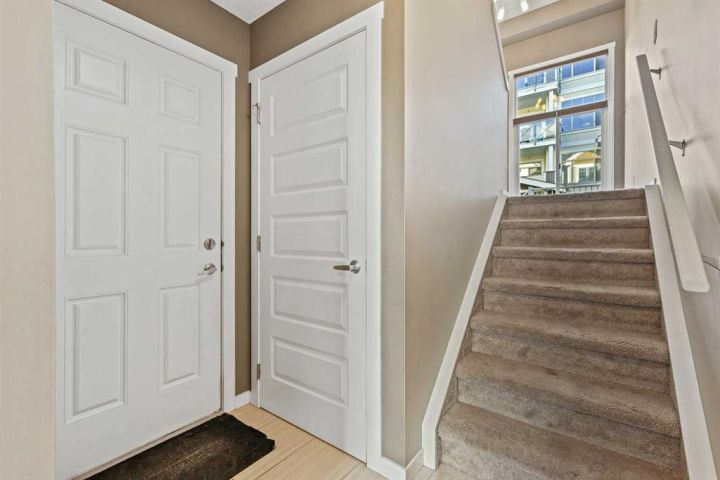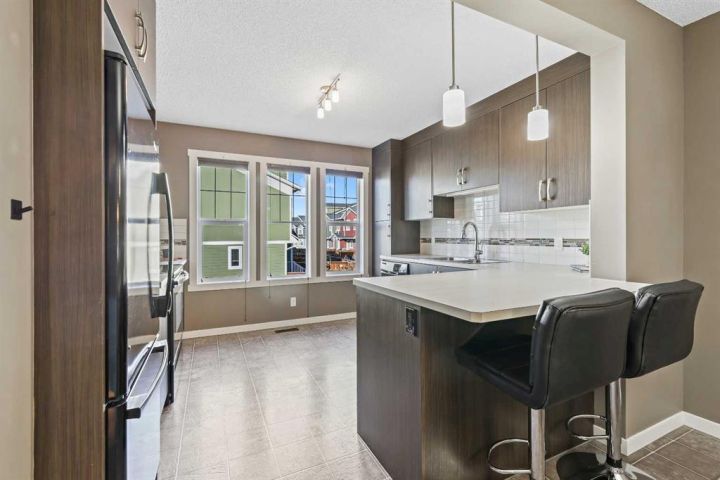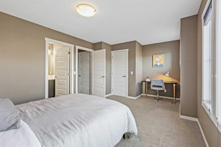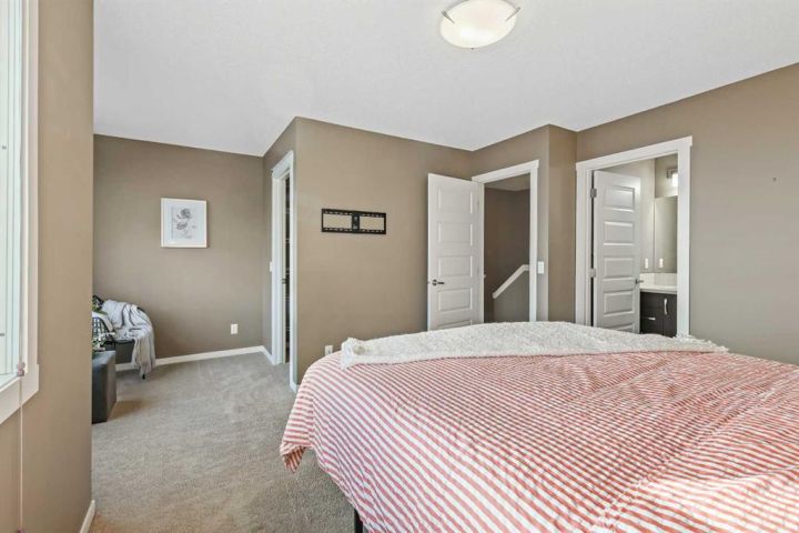This stylish townhouse offers a bright and functional 4 level split layout with 2 primary bedrooms, each featuring a walk-in closet and private ensuite. The home includes an attached single car garage, extra driveway parking, and a rare fully fenced south facing backyard. Perfect for pets, entertaining, or relaxing outdoors. The main floor features a spacious living room with vaulted ceilings, and direct access to the backyard. The modern kitchen offers a breakfast bar for two, ample cabinet space, and a generous dining area, complemented by a convenient 2-piece powder room. Upstairs, both bedrooms are large enough to accommodate a desk or dresser, or a cozy corner to retreat at the end of the day. The fully developed lower level provides additional living space. A great space for a rec room, home gym, or home office, complete with a 2-piece bath and linen closet. Additional highlights include central A/C (installed 2021), a deck with gas line, and a quiet location within the highly sought-after, lake-access community of Auburn Bay. Enjoy all the amenities this neighbourhood offers, including year-round HOA activities, the beach and lake, nearby schools, South Health Campus, YMCA, restaurants, shopping, parks, and easy access to Stoney Trail and Deerfoot/QE II. Modern comfort, low-maintenance living, and resort-style amenities. This home truly has it all!