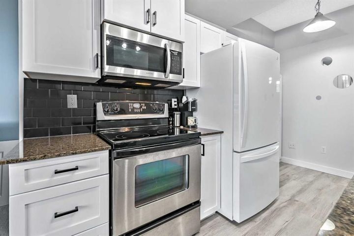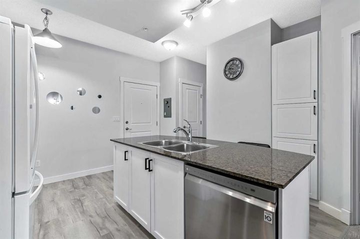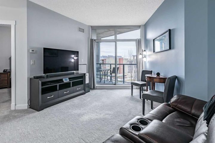 Welcome to Gateway South Centre in the heart of Lake Bonavista, one of Calgary’s most sought-after communities. This exceptionally well-managed concrete building is renowned for its quality and care, proudly recognized as the 2025 Condominium of the Year by the Canadian Condominium Institute (CCI). Enjoy peace of mind with geo-thermal heating, cooling, and electricity—all included in the condo fees. Plus, this pet-friendly residence ensures every member of your household feels right at home. This bright and inviting one-bedroom suite offers a thoughtfully designed open-concept layout, bathed in natural light and enhanced by the comfort of central air conditioning. The kitchen flows seamlessly into the living area, creating a warm and functional space perfect for both relaxing and entertaining. Featuring in-suite laundry, a spacious bedroom, and a private patio with a gas BBQ hookup, overlooking a serene courtyard with mature trees and landscaped green space—a tranquil retreat in the city. Residents of Gateway South Centre enjoy an impressive collection of amenities, including a fully equipped fitness centre, a beautifully appointed party room with a full kitchen for hosting gatherings, and a social lounge complete with a pool table, ping-pong, fireplace, TV, and kitchenette. For your guests’ convenience, the building offers two guest suites and ample visitor parking. Finally, all with the convenience of a heated underground parkade with titled parking stall and assigned storage. All of this is ideally located within walking distance to the LRT, Avenida Village’s shops and restaurants, Fish Creek Provincial Park, and Southcentre Mall—offering the perfect balance of comfort, convenience, and community.