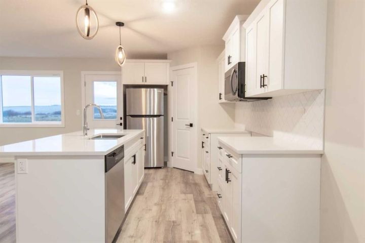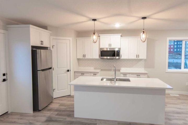 Experience modern luxury and move in December 15 into this stunning 3-bedroom, 2.5-bathroom Greyson Executive Duplex in Bridgewater, Clairmont, featuring an attached garage, backing onto peaceful greenspace, low county taxes (just over $200/month), quartz kitchen countertops, stainless steel appliances, hot water on demand, and a new home warranty. Nearly complete, this home offers modern design, quality craftsmanship, and incredible value for first-time buyers or investors. Entertain in your luxury kitchen featuring soft-close cabinets and real wood dovetail-jointed soft-close drawers, all finished with quartz counters and a tile backsplash that surrounds the large island with an eating bar, seamlessly connecting to the open-concept dining and living areas. Upstairs, the spacious primary suite includes a walk-in closet and 4-piece ensuite, complemented by two additional bedrooms, another full bathroom, and a convenient second-floor laundry area. Smart and efficient upgrades include a MYQ Wi-Fi–enabled garage door opener, high-efficiency furnace, low-E argon-filled windows, and lifetime fiberglass shingles. The 12’x24’ attached garage is drywalled, insulated, and fire-taped, and the unfinished basement offers endless possibilities for future development; it is roughed in for another bathroom, and egress windows are installed to accommodate two more bedrooms and a third 4-piece bathroom if you choose, with the potential to create a 5-bedroom, 3-bathroom home. Enjoy nearby parks, walking trails, and an award-winning K–8 school, all with low county taxes—don’t miss your chance to own this luxury duplex and move in before the holidays!