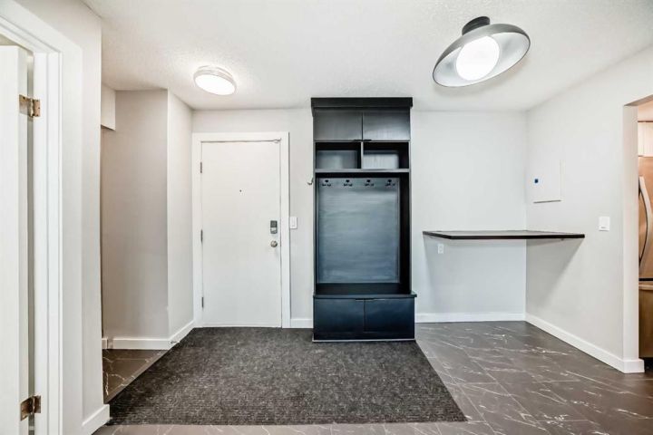 Welcome to this fully updated 1-bedroom, 1-bath condo in the highly sought-after Varsity community. Located in a well-maintained complex, this home features modern tile flooring throughout and thoughtful touches at every turn. The foyer offers built-in storage for convenience, while the kitchen impresses with stainless steel appliances, a microwave hood fan, and under-cabinet lighting. The living room showcases a stylish feature wall with a cozy fireplace, and the spacious bedroom includes a California closet organizer for optimal functionality. The bright 4-piece bathroom, plus in-unit storage, add to the home’s practicality. Step outside to a quiet patio overlooking the peaceful courtyard, perfect for morning coffee or evening relaxation. A shared laundry room within the complex provides added ease. With a fantastic location near Market Mall and quick access to Shaganappi Trail and Crowchild Trail, this condo delivers comfort, convenience, and exceptional value.