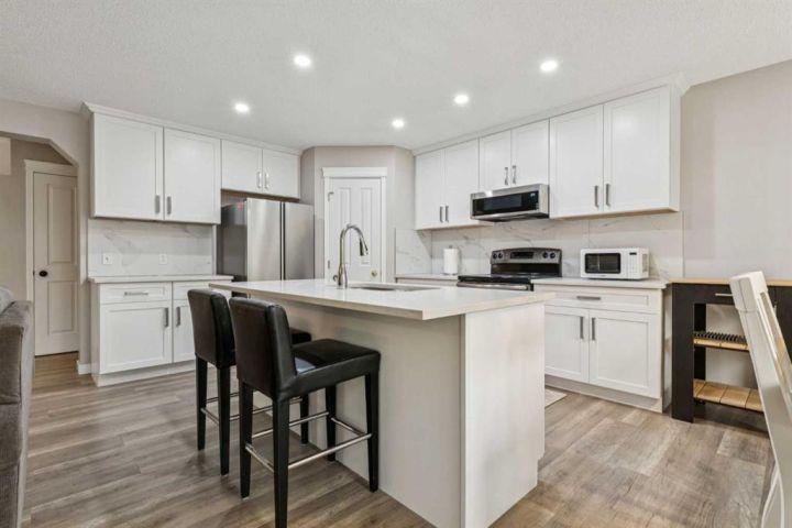 Open House Sat Nov 15 2:30 - 4:30PM | Undeniable value! Welcome to this beautifully maintained and renovated home in the desirable NW community of Panorama Hills. This home is turn-key and absolutely move-in ready with numerous renovations and upgrades in recent years for the discerning buyer. Upgrades include newer A/C unit with permit (2024), hot water tank (2024), roof (2023), microwave hood fan (2025), new smoke and C02 detectors (2025), Furnace and fireplace just inspected and maintained. Upon entry you are greeted by vaulted ceilings, luxury vinyl plank wood floors throughout the home (both levels) and a beautifully renovated kitchen with marble ceramic tiled backsplash and white quartz countertops, stainless steel appliances and fresh white cabinetry. The open layout is perfect with a large dining area that opens onto the balcony for summer entertaining and all-year bbqing potential. The kitchen and dining area opens to the generous sized living room with gas fireplace with mantle and power above for ideal TV placement. The main level also features a nice laundry area and 2 piece bath. Vaulted ceilings draw you to the second level with huge and bright South facing family room. The primary suite is large and features a walk-in closet and 4 piece ensuite bath. Two other good sized bedrooms share an additional 4 piece bath on this level. With a front attached double garage, all window coverings included and options to include all the furniture, this is a unique opportunity that won’t last long. Close to numerous schools, parks and amenities. Book your private viewing today.