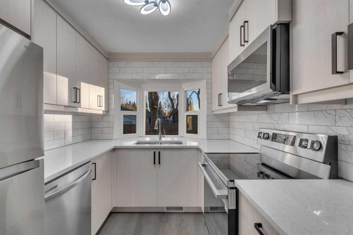 FULLY RENOVATED!! ONE OF THE BIGGEST LOTS (7620 SQFT)!! HEATED OVERSIZED DOUBLE DETACHED GARAGE (23.5' X 23.6')!! SEPARATE ENTRANCE ILLEGAL BASEMENT SUITE!! BRAND NEW ROOF & WINDOWS!! MAJOR UPGRADES THROUGHOUT – NEW FURNACE, HOT WATER TANK & BACKYARD DECK!! NEW FENCING AND LANDSCAPING!! Sitting on a massive lot, this beautifully updated home combines comfort, style, and incredible functionality. Step inside to an open and inviting main floor featuring a bright living area with large windows, a dedicated dining space, and a modern kitchen with stainless steel appliances. The layout offers 3 bedrooms, including a spacious primary suite, and a full 4-piece bath – all with fresh finishes and thoughtful design. The ILLEGAL BASEMENT SUITE with a SEPARATE ENTRANCE adds versatility with 2 bedrooms, a 3-piece bath, a REC room, and a second kitchen. Outside, the upgrades continue — a brand new deck, new fencing, and professional landscaping worth over $50K completely transform the yard into a private retreat. Even the garage stands out – oversized, heated, and perfect for extra storage, hobby space, or vehicles. All the major work is done — roof, windows, furnace, hot water tank, deck, fence, and landscaping — making this a true move-in-ready home. A rare find with this much space, quality, and value!