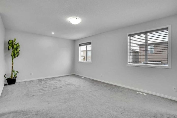 Priced to Sell with an Unbelievable Offer!!! Discover Your Dream Home in Carrington! A stunning 2-storey home offering over 2490 sqft. (1830 sqft. above grade) of thoughtfully designed living space in the highly desirable community of Carrington. This modern home features an open-concept main floor with 9-foot ceilings, with a bright living room, spacious dining area, and a stylish kitchen completed with stainless steel appliances, gas stove, and quartz countertops. Large windows fill the home with sunlight. Elegant LVP flooring throughout the main level offers both durability and sophistication. Upstairs you’ll find four generously sized bedrooms including a primary bedroom with a 4-piece ensuite and walk-in closet. The upper floor balcony is converted into a sunroom. Convenient laundry on the upper floor makes chores easy. The professionally finished basement offers a gaming room, an office, additional full bathroom, and loads of storage. The landscaped backyard is your outdoor oasis, completed with a deck and fencing. The double attached garage can fit two large vehicles. This is a non-smoking and no pet home and has always been meticulously maintained and it shows as soon as you walk in. Easy access to Stoney Trail, and Beddington Trail. Close to schools, lots of amenities including grocery stores, financial institutions, restaurants and shopping centers. Book your showing today!