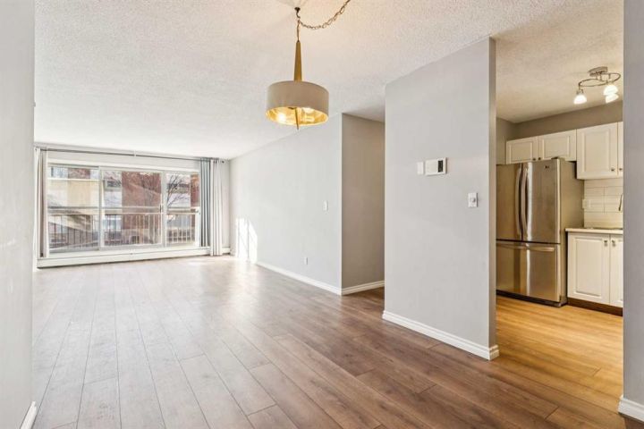 Discover exceptional value in this spacious 910 sq ft, 2nd-floor corner unit, ideally located just steps from everyday amenities and the Heritage LRT Station. With lots of windows, this home offers bright, comfortable living and a layout that feels larger than its measurements. A rare advantage in this unit is the true in-suite laundry, offering privacy and convenience that many other units simply don’t have—an upgrade that significantly enhances day-to-day living. The home features a functional kitchen with ample cabinetry, a bright dining space, and a generous living room that flows seamlessly to the large west-facing balcony, perfect for enjoying afternoon sun or additional outdoor living space. Both bedrooms are well sized, with decent storage and plenty of natural light. An updated 4pc bathroom and excellent in-suite storage round out the interior. Set in a quiet, well-cared-for complex with peaceful neighbours, this property provides a calm residential setting while remaining walkable to shops, cafés, transit, and major roadways. Offering great square footage, a premium corner placement, and rare in-suite laundry, this unit delivers comfort, convenience, and standout value in a highly accessible location.