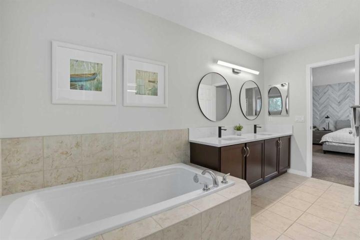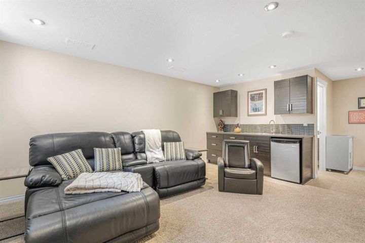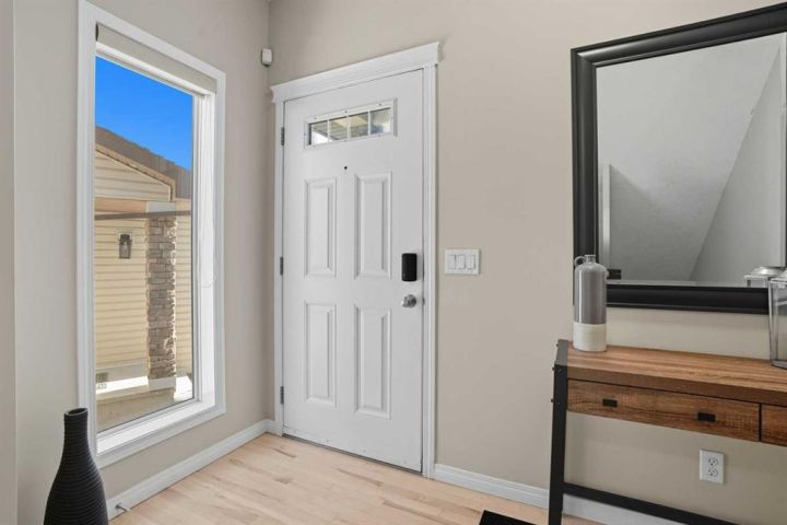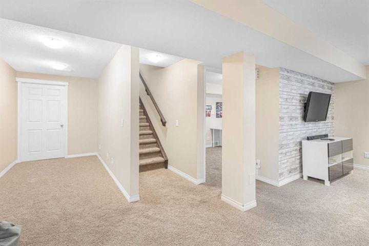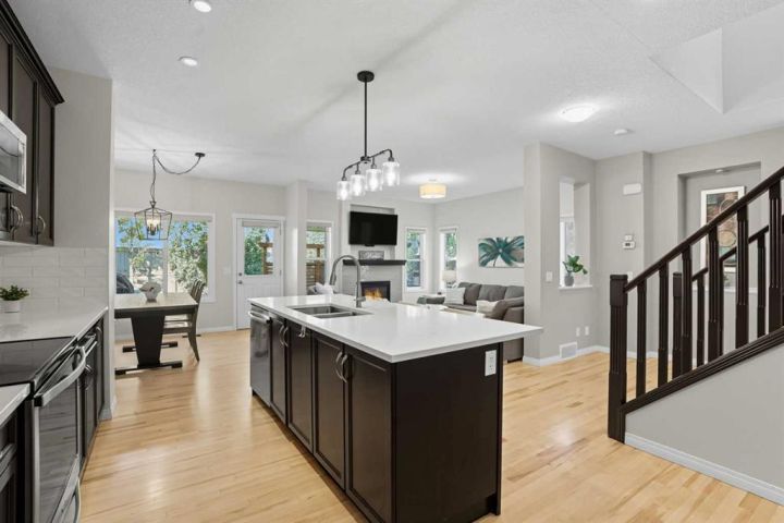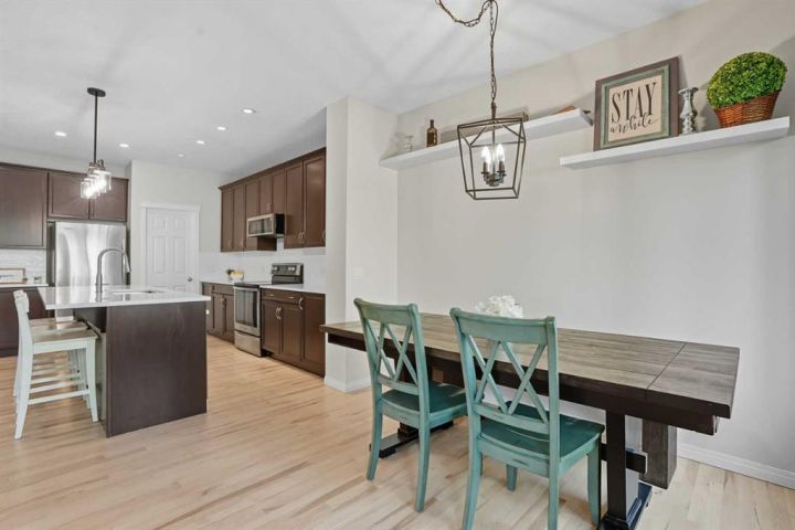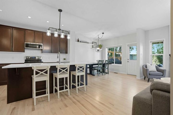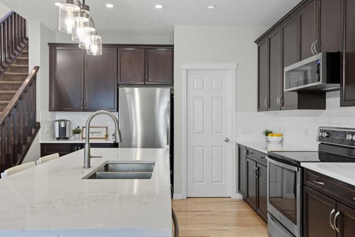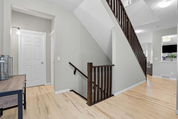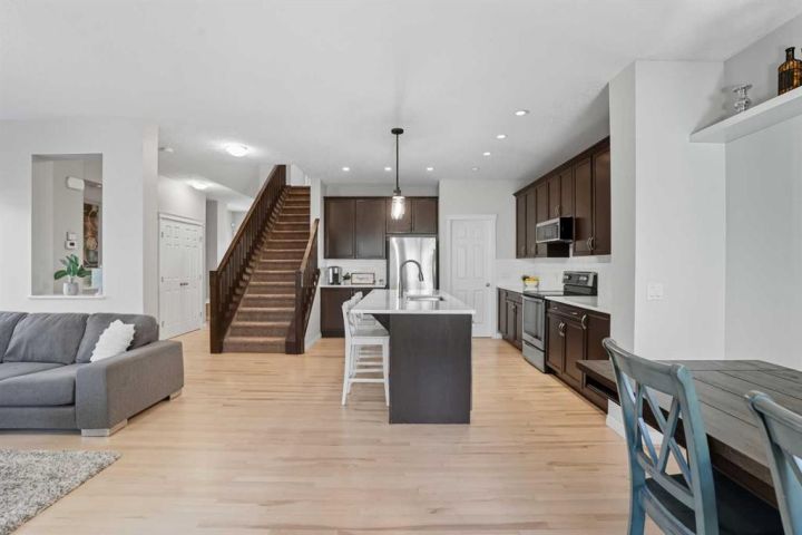 Welcome to this 4 bedroom, 4 bathroom, FULLY FINISHED home in the sought-after community of Kincora. This home is situated on a pie-shaped lot, backing a walking path and only a short drive to all the amenities you need. This home offers pride in ownership and has been freshly painted. Walk inside and be greeted by a functional and thoughtful layout, with a large entry featuring a built-in bench and stunning hardwood floors ( Recently refinished) . The OPEN FLOOR plan features a cozy living room with a gas fireplace and mantel with a recessed space perfect for the TV. The Dining room is spacious and connects to the Kitchen. The kitchen is truly the heart of this home with a massive island with BRAND NEW WHITE QUARTZ counters, plenty of cabinets, plus a walk-through pantry with more cabinets and counter space. The pantry connects to the boot room right off the DOUBLE ATTACHED GARAGE and again offers even more storage. Upstairs you will find at the top of the stairs two well-sized bedrooms both with WALK-IN CLOSETS (One having built in organizer), a 4 piece bathroom with matching quartz counters, and a walk-in LAUNDRY ROOM with even more built-in storage! There is a large west-facing BONUS room with built-in cabinetry and desks and the PRIMARY BEDROOM is tucked away with a 5 piece ENSUITE and WALK-IN CLOSET with Custom built in organizer! The basement has been professionally finished by the builder and features a large Family room with a built-in WET BAR, a FULL 4 piece Bathroom ( Great when you have company) and a 4th spacious Bedroom, plus there is a ton of extra storage in the utility room! The backyard is well-manicured with a tree line ( MUTURE FULL TREES THAT GIVE AMPLE PRIVACY IN THE SPRING and SUMMER) , a Composite Deck, and privacy walls, there is space and hookups for a hot tub, a Central AIR CONDITIONER, plus plenty of room for the kids and dogs to still play and run, the back fence also has access to the walking paths backing the property that will connect you to the fantastic walking paths through Kincora. As if this house isn't perfect enough, it also has a brand new roof , siding and garage door! There is still enough time to move in before Christmas so book your showing TODAY!