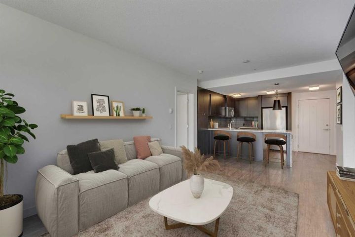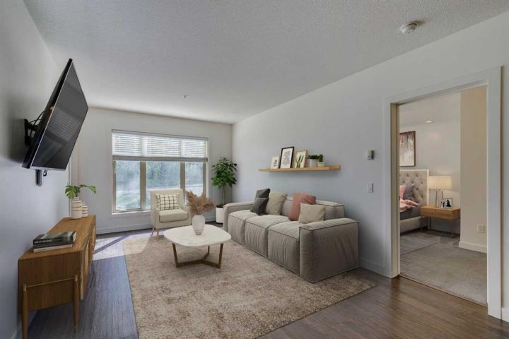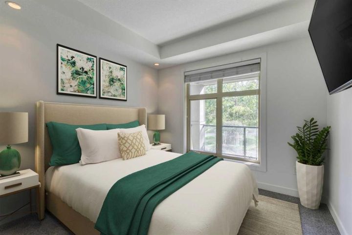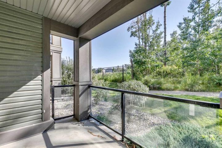 Nestled within the serene community of Aspen Woods, this charming 2-bedroom, 2-bathroom condo exudes comfort and style, offering a perfect blend of modern living and natural beauty. With its inviting open-concept layout and thoughtful design, this residence provides a warm and welcoming ambiance from the moment you step inside. Upon entering, you are greeted by a spacious living space, with natural light streaming through the large windows, creating an airy atmosphere. The seamless flow between the kitchen, living room (and dining if you wish) makes entertaining a breeze, allowing for effortless interaction with family and guests. The well-appointed kitchen boasts contemporary flat panel cabinetry, built in pantry, granite countertops, sleek tile backsplash, and stainless-steel appliances, providing both functionality and style for the aspiring chef. Whether preparing a quick breakfast or hosting a gourmet dinner party, this culinary space is sure to inspire. The spacious living room provides ample space for relaxation and entertaining, as well as additional room for a dining space, if you so desire. Step out the garden door to your private patio…and enjoy a quiet cup of coffee in the morning, or relax after a long day. The primary suite serves as a peaceful retreat, featuring a generously sized bedroom, two closets, and a spa inspired ensuite including double sinks, a stand up shower and separate soaker tub. The second bedroom is equally well-appointed, offering ample space, natural light, and convenient access to the adjacent full bathroom (also with dual sinks). Whether utilized as a guest room, home office, or personal sanctuary, this versatile space can easily adapt to suit your individual needs. For added convenience, this unit also offers insuite laundry, titled parking, a storage locker as well as access to building amenities including gym, bike storage, rentable guest suites and visitor parking. Aspen Woods offers an array of amenities for residents to enjoy, including lush green spaces, walking trails, grocery store, shopping and recreational facilities. Whether you prefer a leisurely stroll through the neighborhood or a day of outdoor adventure, there is something for everyone to enjoy in this idyllic setting. Don't miss your opportunity to make this dream home a reality – schedule your private showing today!