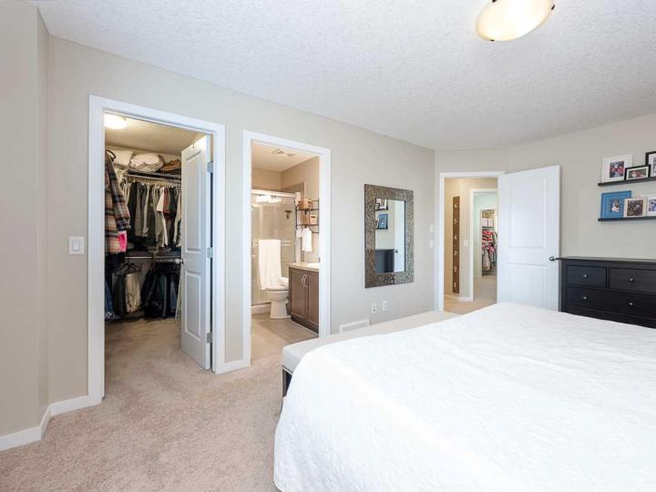 Two and ½ Story properties in Walden only come up for sale once or twice each year! This fantastic 2 1/2 story immaculate 4 bedroom, 5 bathroom family home with over 2,800 square feet including the basement development is perfect for the growing family in highly sought after Walden! Close to schools and shopping. Easy access to ring road (Stoney Trail), MacLeod Trail and Highway 22X. Photos speak for themselves but here are some of the features. The kitchen is bright and spacious with an eating area, an island for quick snacks before leaving for school or work and easy access through the door leading to the awesome deck with a pergola. The double garage beyond is just off the deck. The kitchen has a walk-in pantry and a unique island that can seat 4 or 5. The entire main floor has wood flooring. The spacious area next to the door leading to the deck lends itself well for possibly a café table. Basement development is professionally done with lots of storage and a tiled alcove for an upright freezer. Basement is all carpeted except the laundry room and the 2 piece bath. The second level has the primary bedroom plus two more bedrooms all with walk-in closets and plenty of shelving. The primary bedroom ensuite shower has a built-in seat. The third upper level has a 4-piece bath, 4th bedroom also with a walk-in closet which is currently used as an office by the owners. Two final general comments, the yard is low maintenance and there is a new hot water tank installed in 2024! Call your REALTOR® for a showing today! Don’t miss out on this unique family home!