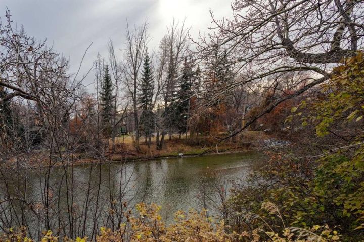 Check the 3D TOUR! One of Calgary’s most vibrant communities is home to this generously sized, sought-after CORNER UNIT in the fabulously refreshed CLASSIC Riverscape Condominiums. This 2-bedroom, 2-bath abode offers just under 1,100 sq. ft. of stylish, feel-good living space. Redesigned in 2023, it features a designated modern kitchen with white cabinetry, quartz countertops, and sleek stainless steel appliances—a dream setup for anyone who loves to cook. Overlooking the dining area, the layout flows nicely into a spacious living room that opens onto an immense wrap-around balcony tucked among the trees—perfect for morning coffee, evening liqueur, or those quiet, special moments in between. Wide-plank vinyl flooring runs throughout. The primary suite feels wonderfully spacious, with a walk-through closet leading to a 4-pc ensuite featuring a striking Travertine marble countertop. Down the hall, a second 4-pc bath with matching finishes complements the additional bedroom. A surprisingly large laundry/storage area adds welcomed convenience. This unit includes one assigned underground parking stall and separate storage. Residents enjoy a fitness room adjacent to a shared outdoor patio, while landscaped grounds lead to the Elbow River pathways and the lively 4th Street corridor—home to cozy cafés, brunch spots, restaurants, and boutique shops. With nearby transit, river pathways, and quick access to 4th Street, 17th Avenue and Downtown, this location truly has it all ( get yer steps in!). Experience living in one of Calgary’s most iconic and walkable communities. Don’t miss this—the VIBE is real. 🙂