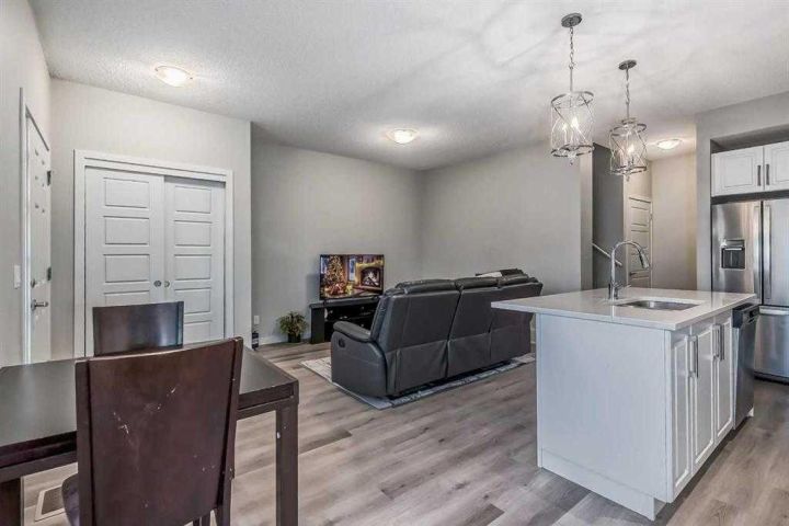 Welcome to this beautifully designed 2-bedroom, 2.5-bathroom townhouse located in the sought-after community of Redstone, NE Calgary. Offering a perfect blend of modern style, comfort, and functionality, this home stands out for its thoughtful layout and well-maintained condition. Step inside to a bright and open-concept main floor that feels both inviting and contemporary. The spacious living area flows seamlessly into a sleek kitchen featuring stainless steel appliances, ample cabinetry, and plenty of counter space—perfect for cooking, dining, and entertaining. Upstairs, you’ll find two generous bedrooms, each offering privacy and comfort. The primary suite includes its own ensuite bathroom, while the second bedroom is conveniently located near another full bath—ideal for family or guests. A dedicated upper-floor laundry area adds everyday convenience. The unfinished basement offers the perfect opportunity to create a space that fits your lifestyle—whether that’s a home office, gym, or additional living area. This home includes a surface parking stall, low condo fees, and is part of a well-managed, pet-friendly complex. It’s an excellent choice for first-time buyers seeking affordability or investors looking for a strong rental opportunity in a vibrant and growing community. Located in one of Calgary’s most desirable northeast neighborhoods, Redstone offers parks, walking paths, playgrounds, and close proximity to shopping, dining, and schools. Commuting is convenient with easy access to Stoney Trail, Metis Trail, and Deerfoot Trail, connecting you to the rest of the city in minutes. Experience the perfect combination of comfort, convenience, and value in this beautiful Redstone townhouse. Book your showing today and see why this home stands out from the rest! Note: Photos were taken when the property was Bought last
