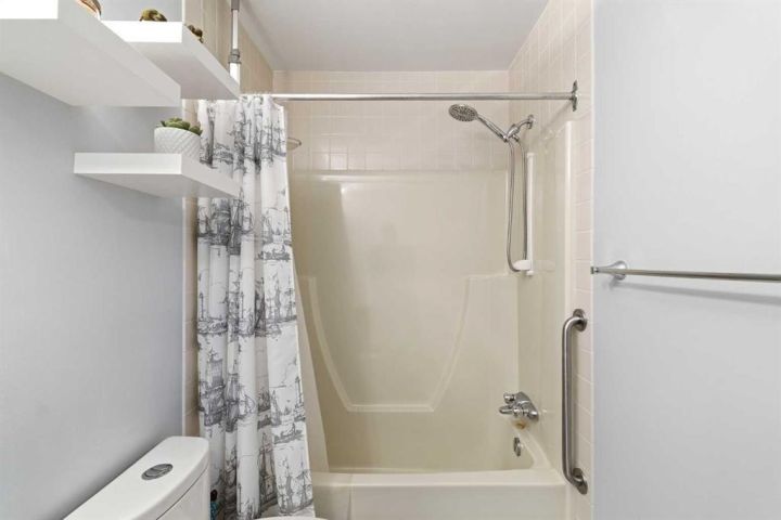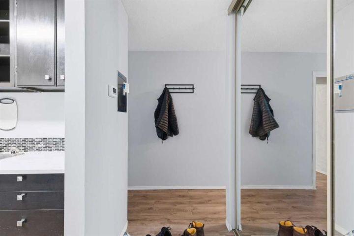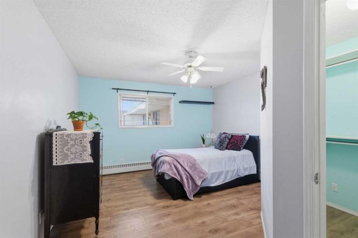 This bright and spacious nearly 1,000 square foot TOP FLOOR condo has been extensively updated and is move in ready. Featuring newer vinyl plank flooring throughout, fresh paint, and renovated bathrooms, the home offers a clean and modern feel from the moment you walk in. Enjoy the oversized balcony (over 90 square feet plus an exterior storage room) overlooking peaceful green space. It is the perfect spot for morning coffee, summer reading, or stepping right out onto the walking path. The layout includes two generous bedrooms, two full bathrooms including an ensuite, in suite laundry, and excellent storage. This well managed building offers underground parking, a healthy reserve fund, and the roof has been recently replaced, giving you peace of mind for years to come. The unit’s position at the back of the building provides exceptional privacy and quiet. Located across from a school, steps from transit with quick access to Century Park LRT, this property offers affordable convenience.