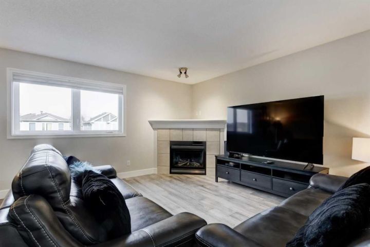 HOME SWEET HOME! Enjoy contemporary living in this spectacular 2 storey family home desirably located on a spacious, beautifully manicured lot on a family friendly street backing on to a playground/green space, an elementary school and close to Chaparral lake. Heading inside you will instantly notice the open concept floor plan offering an exquisitely maintained living space with gleaming, luxurious engineering hardwood flooring, sophisticated finishing’s and CENTRAL AIR CONDITIONING. The main floor features a spacious formal, dining room with access to the patio with your HOT TUB, a sun-drenched living room flooded in natural sunlight, a 2 piece vanity bathroom and the modern chef’s kitchen complete with upgraded stainless steel appliances, stunning quartz countertops, a quartz peninsula island with an eating bar, ample cabinetry and a convenient corner pantry to help with all your kitchen storage needs. Upstairs, you will find the large bonus room which is perfect for your growing family or entertaining with a cozy gas burning fireplace with a mantle, 2 great-sized bedrooms, a stylish 4 piece bathroom and the massive, sensational master retreat complete with a walk-in closet and a spa-like 4 piece ensuite with tile floors and a gleaming quartz vanity. The unfinished basement offers you incredible potential for future development that would be ideal for a bedroom, full bathroom and recreation room. Downstairs contains the spacious laundry room, 2 egress windows plus tons of storage space. Additional HOME UPGRADES include a 60 gallon water tank, water softener (2019), central air conditioner, humidifier, silent floors and high ceilings. Outside, features the double attached garage with wooden shelves, built-in cabinets, a freezer and new garage doors. The driveway can accommodate 2 additional parking spots and the spacious, fully landscaped and fenced backyard provides you with your own private oasis with underground sprinklers, a huge composite Trex decking patio with a relaxing hot tub and a garden area with cement curbing around the flowerbeds. This amazing location is close to schools, parks/greenspaces, private Chaparral lake, Blue Devil Golf Course for all the golf enthusiasts, public transportation, shopping and quick access to Stoney Trail. Don’t miss out on this GEM, book your private viewing today!