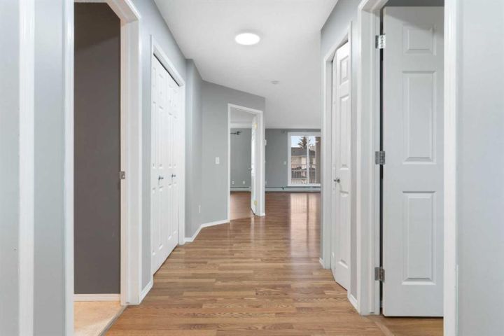 Discover unparalleled brightness and space in this MAGNIFICENT, large 2-BEDROOM, 2-BATHROOM CORNER UNIT, perfectly designed for sophisticated urban living in the COMMUNITY OF COUNTRY HILLS VILLAGE. Step inside and be immediately greeted by the flood of natural light pouring in from oversized windows on one side and a large glass patio door on the other, illuminating the expansive, open-concept living area. This generous space, seamlessly integrating the living, dining, and kitchen areas, is ideal for both quiet relaxation and impressive entertaining. Cozy up on chilly evenings by the elegant gas fireplace, a warm focal point of the room. The Beautiful Kitchen has tons of storage cabinets and drawers, a window over the sink and a convenient island for additional sitting and counter space. Both Bedrooms are generously proportioned with the Primary suite offering a private 3-piece ensuite and ample closet space. There is an additional 4-piece bathroom, a large In-Suite laundry room with built in shelving, a good size coat closet and additional external storage room. This rare gem offers a unique blend of space, light, and functional design. Don't miss this opportunity to call it home. Location is close to the Shopping Plaza with grocery stores, restaurants, pharmacy as well as city transportation, playgrounds, schools, Vivo Rec Centre, Landmark Cinema, etc. Quick and Easy Access to Deerfoot Trail.