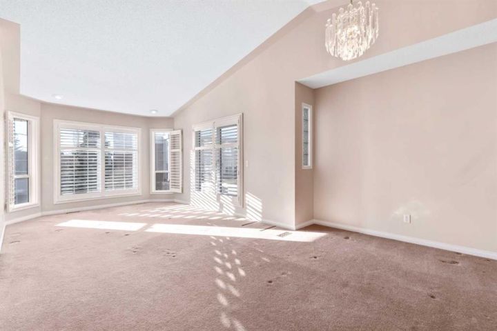 ***Open House Saturday November 15 from noon-3 pm*** Opportunity knocks in this detached Signal Hill bungalow villa! Imagine convenient single-level living with main floor laundry - but with almost 1,000 extra square feet in the basement for guests, movie or game nights, and hosting extended family and friends. And, the low monthly HOA fee means you don't have to mow your own lawn or shovel your own snow. This detached bungalow presents a great opportunity for buyers who want to put their own cosmetic touches on their new home. The furnace, shingles, and hot water tank have all been replaced in the past 3-5 years so you can focus on your personal design touches. Entering from the front door, you'll find a spacious south-facing living room and formal dining area with vaulted ceilings, and there are multiple large windows on two walls that let in loads of natural light. If you enter the home from the back patio, you'll find a cozy kitchen, breakfast nook, and family room with a gas fireplace. The primary bedroom easily fits a king-sized bedroom set, and you'll enjoy the ample walk-in closet and 4-piece ensuite. A 2-piece powder room and laundry / mud room rounds out the main floor. The basement is finished with another full bathroom as well as a large second bedroom and a rec room with a wet bar. This home features vinyl windows all of which have custom shutters, and the shingles were replaced within the past 5 years. The attached double garage has room for two vehicles, plus extra space for a workshop or storage, and your personal driveway fits another two vehicles. The Villas West development has convenient access to Calgary's Ring Road, plus extensive shopping opportunities nearby at Signal Hill and Westhills, and the Westside Rec Centre and 69 St SW C-Train station are less than a 10-minute drive away. Book a showing with your favourite REALTOR(R) today. )NOTE: photos with furniture have been virtually staged.)