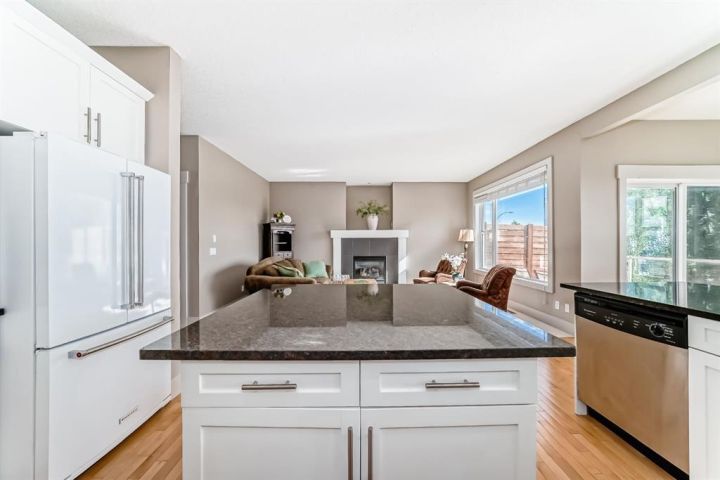 Elegant Family Home in Desirable Springbank Hill" Discover this beautifully appointed residence in the prestigious Summit of Montreux community, offering an ideal blend of luxury, comfort, and functionality. The welcoming main floor features an open-concept design with a gourmet kitchen boasting granite countertops, stainless steel appliances, a spacious island, and ample cabinetry for storage. Sunlit living areas with gleaming hardwood floors and large windows flow effortlessly to a private home office—perfect for today’s work-from-home lifestyle. A cozy dining area and a gas fireplace in the living room create an inviting atmosphere for family gatherings. Upstairs, the luxurious primary suite impresses with a walk-in closet and a spa-like ensuite featuring dual vanities, a soaker tub, and a separate glass-enclosed shower. Two additional generously sized bedrooms share a well-appointed bathroom, while a cozy family room with balcony access provides the perfect retreat for relaxation. The fully developed lower level offers versatile space with two additional bedrooms, a full bathroom, and a kitchenette—ideal for guests, teens, or a home gym. Practical features include a double attached garage with built-in storage, a professionally landscaped yard, and a prime location near top-rated schools, upscale shopping, scenic parks, and easy access to major roadways. This home combines modern elegance with everyday convenience, making it perfect for growing families or those who love to entertain. Experience refined living in Springbank Hill—schedule your private showing today and make this stunning property your new home!