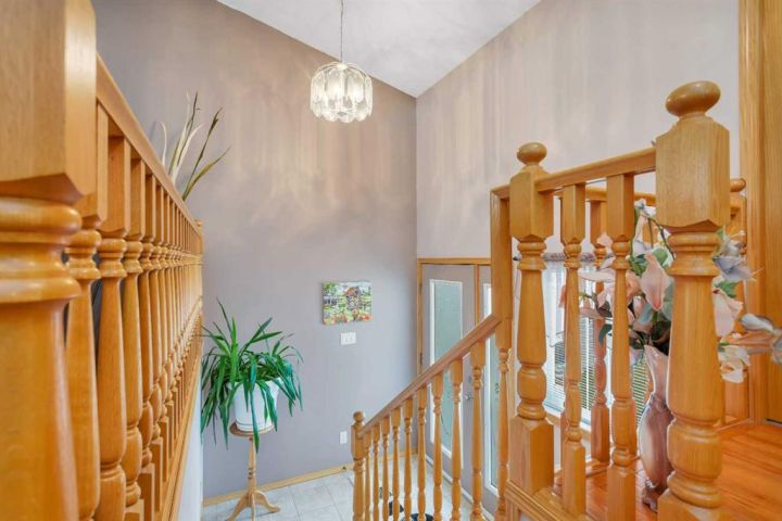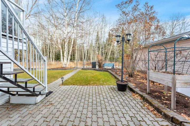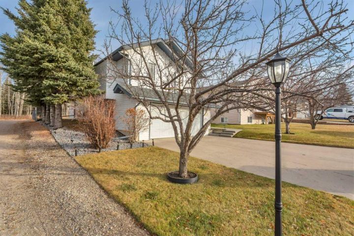 Welcome to the delightful bi-level home at the north end of Rocky Mountain House. This home brings out the cozy everywhere through out the home. Cozy yet open concept style that flows from the Dining room into the Living room and to the front entry all with the overhead vaulted ceiling. Here is a home that has been pristinely kept by still the original owners, non pet, non smoking or children raised in this home. Very well maintained inside and outside the home.. Large vinyl windows through out the main floor and basement level. Main floor has the Primary bedroom with 2 pcs. en-suite, 2 other bedrooms, full sized bathroom, large kitchen- dining combo. Dining and living room offer full view of the back yard with no neighbors behind or on the one side of the home. The Living room with its hardwood floors that flow down the staircase of the front entry.. Basement presents walk out to the garage, 3 pcs. bathroom/laundry room, 1 bedroom, , cozy family room with wood burning insert fireplace, and the ceiling is suspended ceiling. Siding, roof shingles replace 10-12 yrs ago, hot water tank replaced April 2021, all flooring on main floor replaced in 2008. The dining room flows out to a 8' by 14 ft composite deck with a gazebo on it. Truly a home to enjoy. Right by walking path and close to parks.