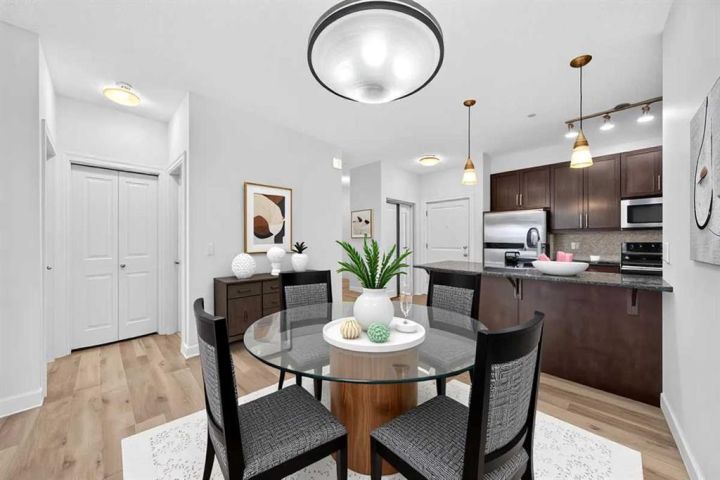 Welcome to this bright & beautifully updated 940 sqft apartment in the heart of Arbour Lake! This spacious 2-bedroom, 2-bathroom unit features a flexible den—perfect for a home office, guest room, storage, extended wardrobe...use your imagination!Step inside to brand new luxury vinyl plank (LVP) flooring that flows seamlessly throughout the living space, creating a modern and low-maintenance finish. The kitchen boasts granite countertops and a thoughtful layout of functional cabinet space. Store the bulk Costco hauls in the storage space tucked at the end of the kitchen. The open layout is surrounded by generous windows that flood the home with natural light, giving it an open, airy feel.The living room provides a warm and welcoming gathering space around the gas fireplace for winter evenings. The primary bedroom includes a walk-through closet and a private ensuite, with the second bedroom conveniently located near the second full bath. In-suite laundry adds convenience, and you’ll appreciate the two designated parking stalls in the secured underground parkade.LOCATION: Positioned just steps from the Crowfoot LRT station, commuting couldn’t be easier — whether you're heading downtown or to the University of Calgary. Major roadways like Stoney Trail, Crowchild Trail, and Sarcee Trail are all nearby, giving you excellent access to the rest of the city. Arbour Lake is known for its private lake community, with year-round recreation including swimming, boating, ice skating, and pathway systems for walking or biking. You’re moments away from Crowfoot Crossing, a bustling outdoor retail hub with over 240 shops and services. Grocery needs are well met with nearby Safeway, Co-op, Community Natural Foods, and Amaranth Whole Foods Market. For recreation, the Melcor YMCA offers fitness programs, pools, and community space. Prime location, versatile layout with almost 1000sqft of updated living space, 2 parking stalls - perfect for first-time homebuyers or investors. Take advantage of the opportunity and dive into this property.
