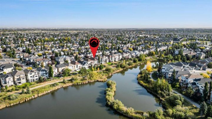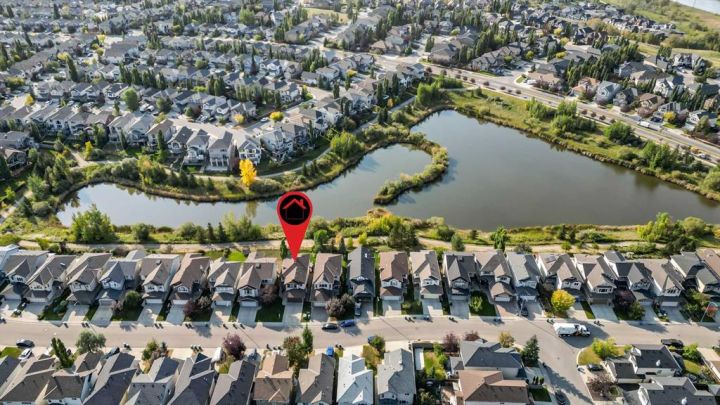 Welcome to a rare opportunity in the sought-after community of Cranston! This beautiful 2-storey home, lovingly maintained by the original owners, offers over 2,800 sq. ft. of thoughtfully designed living space with 5 bedrooms and 3.5 bathrooms. From the moment you arrive, you’ll notice the pride of ownership and tasteful updates that make this home truly move-in ready. The heart of the home is the recently updated kitchen, featuring stunning Caesarstone countertops, brand-new stainless steel appliances, and an abundance of cabinetry. Perfect for entertaining, the kitchen flows seamlessly into the open-concept living and dining areas. Step out onto the panoramic deck and take in the breathtaking views of the serene pond and surrounding green space. Upstairs, you’ll find four generous bedrooms, each with brand-new carpet for a fresh, modern feel. The primary retreat is a true sanctuary, complete with a spacious walk-in closet and a luxurious 5-piece ensuite. The fully finished walkout basement extends your living space and is designed for versatility. Complete with Gemstone lights throughout, enjoy cozy family movie nights in the den, create a games room, or host overnight guests with the additional bedroom and full bathroom. The basement truly shines with direct access to your backyard oasis, where peace and quiet abound. Relax in your private yard backing onto a walking path and pond, offering a rare balance of nature and convenience. Families will love the location, as this home is within walking distance to top-rated elementary and middle schools, making it an ideal choice for growing households. This home combines timeless charm with modern updates and a location that is second to none. With a walkout basement, updated kitchen, new carpeting, proximity to schools, and tranquil outdoor setting, this Cranston gem is the perfect place to call home. Don’t miss your chance to make it yours!