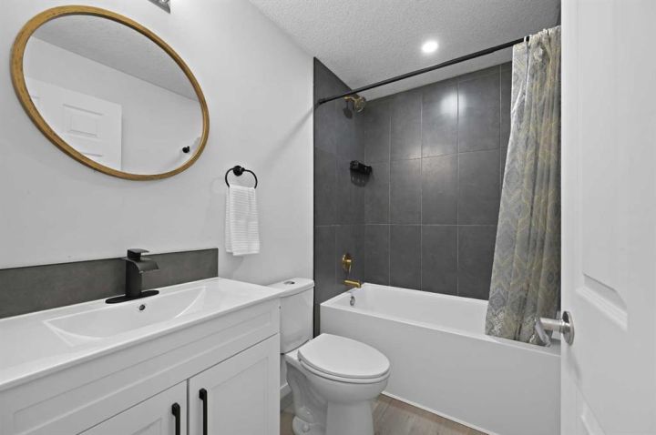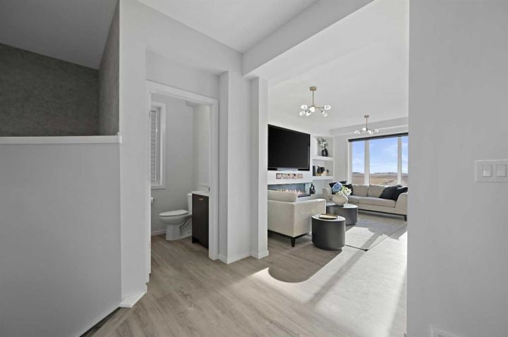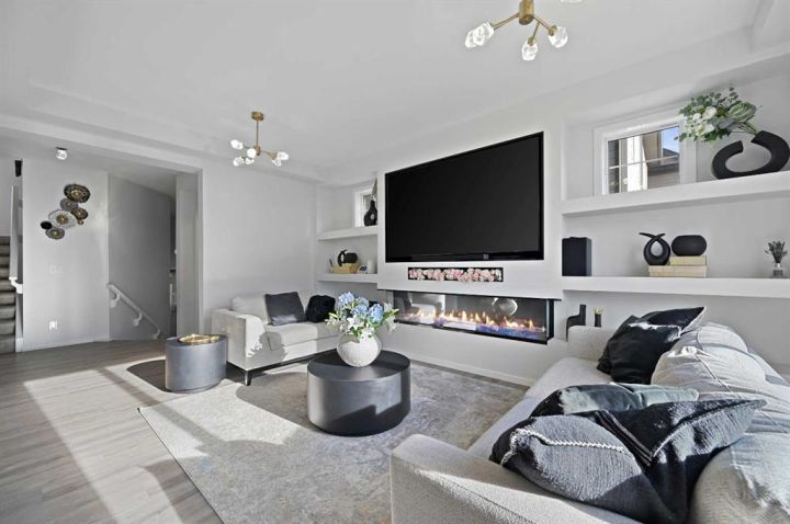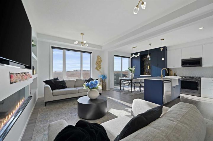 Welcome to this true 10/10 meticulously designed home with an amazing location rocking a SUNNY SOUTH facing yard with no rear neighbours behind and a WALKOUT BASEMENT that has been fully developed with a kitchenette and separate laundry to be that mortgage helper you've been searching for! This is not your cookie cutter home, this home is truly one of a kind with incredible upgrades throughout and it hosts downtown Calgary and mountain views! The bright main level layout feels like a luxury show home with an oversized quartz island, quartz countertops, upgraded two tone cabinets, a farm sink feature, upgraded stainless black steel appliance package, a well designed built in pantry/bar area, pot lights, upgraded light fixtures, oversized electric fireplace feature wall with built-in shelving, air conditioning, upgraded luxury vinyl plank flooring, half bath, "Next Step Option" (stairs to basement finished with railing), knockdown ceilings throughout, 9 ft ceiling on the main floor and a sunny OPEN CONCEPT layout that seamlessly ties the main floor together to feel like home. The upper level greets you with the large bonus room with its very own private balcony off the front of the home and perhaps the coolest room in the house is the kids play area that was developed off of the bonus room.The well laid out primary bedroom retreat hosts a walk-in closet and a 5 piece ensuite bathroom with a dual sink quartz vanity, a fully tiled shower with the upgraded glass option and a deep soaker tub (upgraded with the "Bath Oasis" builder option). The spacious 2nd and 3rd bedrooms upstairs are conveniently located next to the 2nd full bathroom (also with a quartz countertop) which is adjacent to the upstairs laundry room. The fully developed basement rocks a full kitchenette including its own separate laundry which is perfect for guests or renters - this is the mortgage helper that you've been dreaming of! This home is like-new, it's loaded with upgrades and it's the definition of pride of home ownership. Don't lift a finger because this beautiful home with an amazing location is ready for its next owner and this property shows even better in person - come see for yourself!