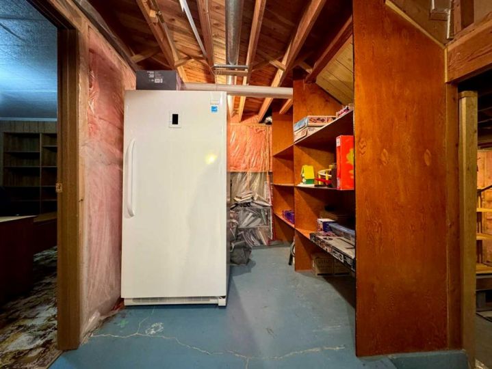 Stove, Hood Fan, Dishwasher, Washer, Dryer, Upright Freezer, A/C, Window Coverings, Shelving in the Basement, Fish in the pond with feader and pond supplies, Furniture