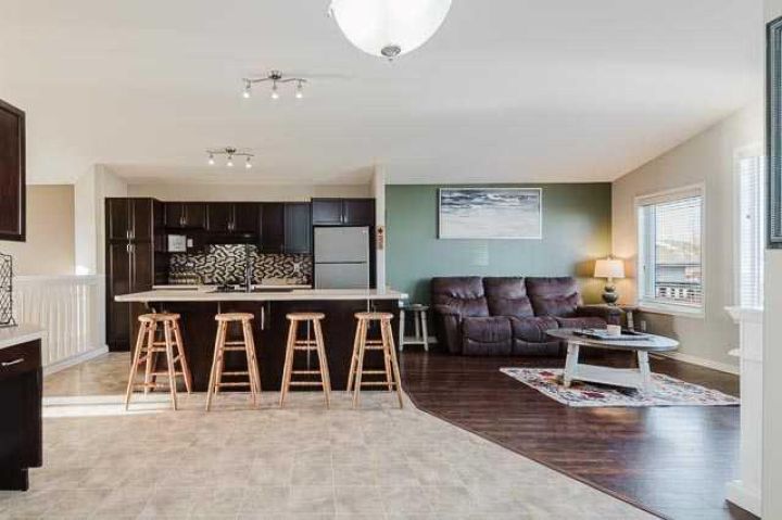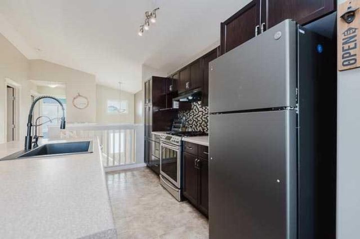 Welcome to this spacious 4-bedroom, 2 full bathroom single detached home designed for comfortable living and entertaining. The open-concept main floor is filled with natural light, featuring large windows that create a bright and inviting atmosphere. The modern kitchen boasts a convenient eating island and a gas range, perfect for family meals and gatherings. Enjoy the luxury of two primary bedrooms—one on the main floor and a large 4-piece ensuite in the basement—offering flexibility and privacy for your household. The basement also includes a wet bar, ideal for entertaining guests or relaxing evenings. Additional highlights include an on-demand hot water system, a parking pad in front, and a large deck with backyard parking, providing ample space for vehicles and outdoor enjoyment. This home perfectly balances functionality and style in a desirable setting.