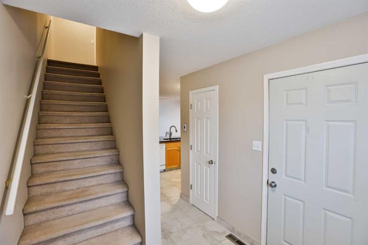 Welcome to West Point Condominiums — a well-maintained duplex-style bare land condo perfectly located in West Lethbridge! This inviting 3-bedroom, 2.5-bath home offers 1,166 sq. ft. above grade plus a beautifully developed basement completed within the last five years. Step inside to find hardwood flooring, heated tile floors, and a bright, open layout that feels instantly like home. The kitchen and dining area flow seamlessly to a good-sized private deck overlooking a fenced backyard — perfect for morning coffee, BBQs, or relaxing in your own outdoor space. With no neighbour beside you, you’ll appreciate the added sense of privacy and peace. Upstairs features two spacious bedrooms and a full bath, while the lower level includes an additional bedroom, bathroom with custom tile shower, and laundry area with extra pot lights, a sliding barn door, and stylish laminate flooring. Recent updates include a new furnace (2018), hot water tank (2021), air conditioning, and a sump pump for extra peace of mind. With low condo fees, this property is ideal for first-time home buyers, downsizers, or anyone looking for a solid revenue property in a prime westside location near shopping, parks, schools, and the University of Lethbridge.