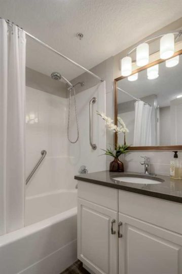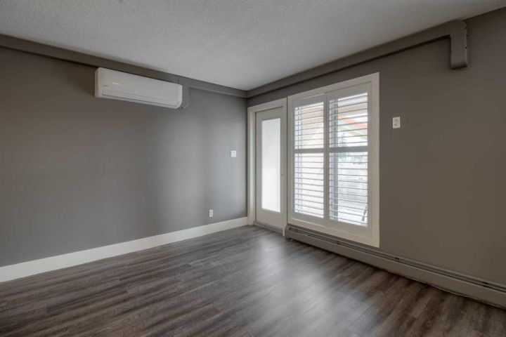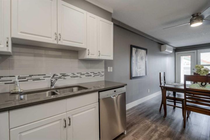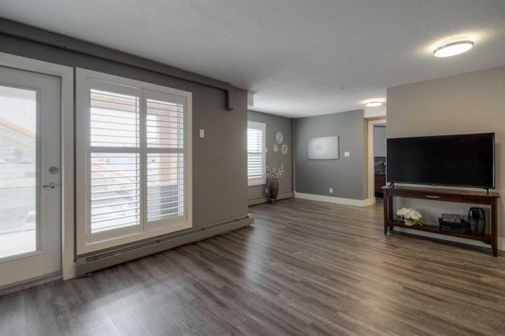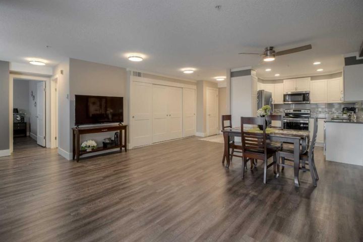 Great things come in small packages!! This one bedroom ,one bathroom condo has had an impressive makeover and is ready for the next gal or guy to move in and start enjoying all the features and amenities River Ridge has to offer. Between material and labor over $60,000.00 was spent on this upgrade, removing the 90's look and feel. Check out the split mini/air conditioning which is a life saver in the summer but also can become a source of backup heat if anything should happen to the buildings heat system. New floor coverings, new quartz countertops & backsplash, soft close hardware added to cabinets, new appliances, new LED light fixtures, new plantation blinds, all new interior doors, baseboards and trim , fresh paint, upgraded bathroom, it does not take long for renos to add up!! The East exposure allows one to enjoy the covered 8' x 11' deck on a windy or rainy day so morning coffee and a breath of fresh air is easy to do in this suite. The location of this suite in the building is so close to the elevator and the staircase so convenient access in and out. If living in an ideal down-sized space is in your future, take a good look at an efficient, well lit , modern kitchen with a good size dining and living room space that allows room to host family and friends . Designed with wall to wall storage space, including a separate laundry room with brand new stacking washer/dryer with folding and hanging space for the laundry. The bedroom will measure for a queen sized bed with night stands and the ideal corner jogged space off the living room makes an ideal flex corner, whether you want to set up a sewing machine, an office or library space, a yoga space, a place for the grandkids to have their own small table and toy area, or perhaps you want to make this into a walk in closet off the bedroom! So many options. If you want clean, modern, and well thought out renovations, in an Adult only Building that features a gorgeous swimming pool , sauna, hot tub, exercise gym, craft room, workshop, and huge party room for banquets and community entertainment you wont be disappointed. The backyard of River Ridge has mature greenspace, walking paths to the coulees, a gazebo to read or take your coffee out there or meet up with neighbors for regular walks. Be sure to check out this luxury condo and the great community that River Ridge Estates offers.