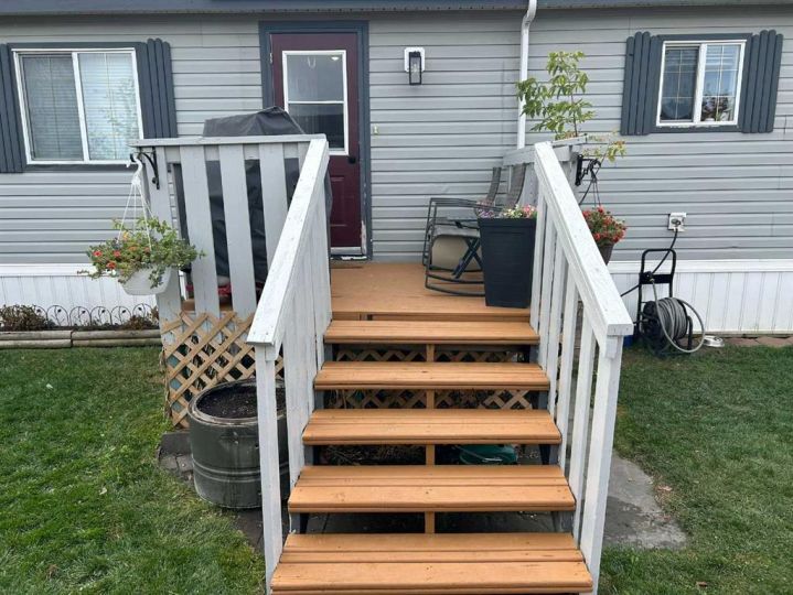 Delightful and energy-efficient, this home is ideal for young families, retirees, or anyone seeking comfort and quality. Featuring large 46x130 lot, spacious rooms, tasteful décor, and durable vinyl plank flooring, it includes five appliances for easy living. Built with 2x6 exterior walls, central air conditioning, and ceiling fans, this home offers exceptional year-round comfort and efficiency. The primary bedroom boasts a private ensuite and walk-in closet, while the overall design combines practicality with style, making this a smart investment with mortgage payments often lower than rent. Step outside to enjoy a beautifully landscaped yard filled with perennials, raised garden boxes, crab apple and pear trees, raspberries, strawberries, rhubarb, asparagus, chives and attractive wood fencing (built in 2020). The peaceful outdoor spaces make the most of sunny summer days. Convenient parking options include, in front, ample on-street parking and paved double driveway, as well as back-lane access to more generous off-street parking suitable for vehicles and RVs. The large double garage is a standout feature, complete with workbenches and a practical loft for extra storage. For peace of mind note the following: Regularly maintained furnace, with circuit board replaced in 2018 and motor in 2025; Lennox AC unit installed in 2021; garage improvements done in 2023 include garage insulation, natural gas heater and exhaust fan motor replacement; and front deck painted and stained in 2025.