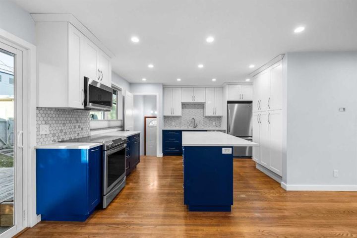 Welcome home to this beautifully renovated 3-bedroom bungalow, perfectly nestled in a mature neighborhood, on a 50x100 ft lot and ideally situated adjacent to a lush green space. Blending timeless charm with modern style, this home offers an inviting, move-in-ready retreat for anyone seeking comfort, convenience, and a connection to nature. Step inside to discover a bright and airy open-concept main floor that has been thoughtfully renovated from top to bottom. Gorgeous hardwood floors, newer windows throughout that transfer tons of natural light into the home. The spacious living room features warm, modern finishes and a cozy atmosphere ideal for relaxing or entertaining guests. The renovated kitchen is a true highlight, showcasing updated cabinetry, dove tailed drawers, slow closing hardware, sleek quartz countertops, stainless steel appliances, a large island, builtin pantry, designer backsplash, and a functional layout that makes cooking a pleasure. The adjoining dining area opens seamlessly to the living space, creating an effortless flow throughout the main level. Two comfortable bedrooms on the main floor provide peaceful retreats, both with generous closet space and stylish finishes. The modernized bathroom features fresh tile work, updated fixtures, heated floors, and a clean, contemporary design. Downstairs, the lower level offers excellent additional living space, a perfect space for you to hang out in. Brand new carpet, LVP floors, subfloor, and recently painted. Enjoy a large family room, guest bedroom, modern bathroom, laundry, a home office, and huge storage room! Outside, the private backyard welcomes you with a huge deck, BBQ gas line and perfect orientation to capture evening sun. Access greenspace & baseball diamonds, outdoor rink all across the back lane. Walkable to many conveniences including splash park, tennis courts, Confederation Park, golf course, restaurants, Nose Hill, groceries and more. Also located in close proximity to the University of Calgary LRT station and the University District. The backyard is an ideal spot to enjoy morning coffee, evening sunsets, or quiet weekends surrounded by nature. Mature trees, thoughtful landscaping, and room for more garden beds to make the yard both beautiful and functional. There is an oversized detached garage, with a paved alley and room for additional parking and potential for a much larger garage if desired. Renovations were completed in the basement during 2018 & 2025, main level 2020, and landscaping completed in 2021. Whether you’re a first-time buyer, downsizer, or investor, this renovated 3 bedroom bungalow offers incredible value and lifestyle appeal in the sought after neighborhood of Charleswood.