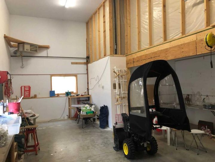 TWO STORY GARAGE & SHOP 2 MAN DOORS ,TWO VEHICLE DOORS , QUONSET HUT INSULATED