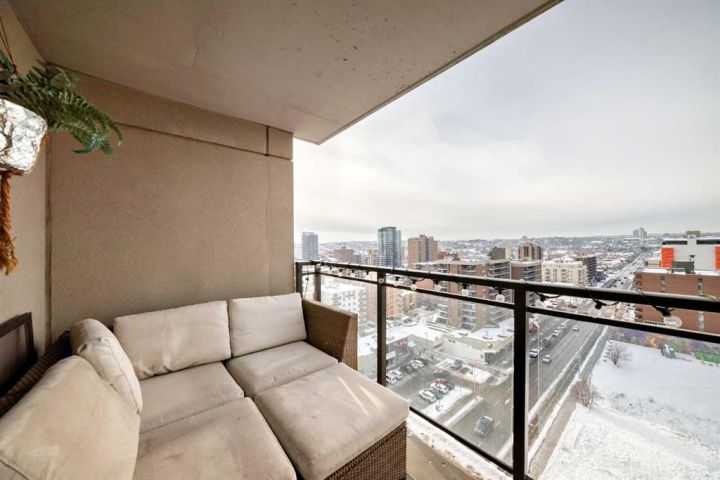 Rooms' with a view. Lots to see with this West and South exposure 14th floor unit in Stella. Full height glass for views with A/C for creature comfort. Open plan for living and dining areas. Galley kitchen with granite and stainless appliance package. Large primary master with 4 piece ensuite and south view. 2nd bedroom/office with south and west views. Nook could be used for home office if 2 bedrooms are your requirements. Both bedrooms have walk-in closets. Insuite laundry. Titled parking (1) and separate storage unit.