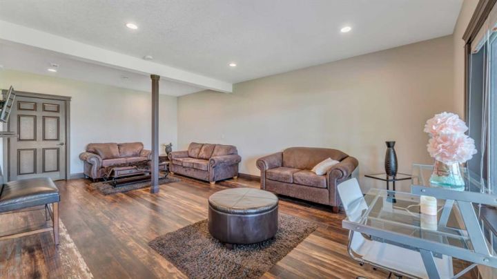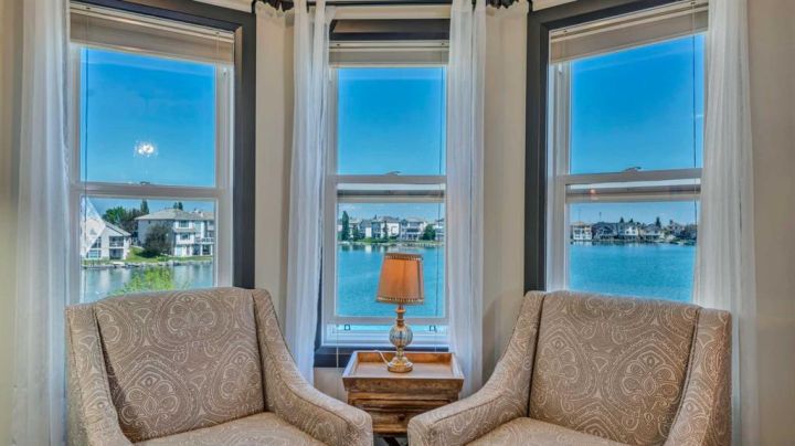 BACKING ONTO LAKE WITH A PRIVATE DOCK | BEAUTIFULLY RENOVATED | 5 BEDROOMS + DEN | LAKE VIEWS FROM EVERY LEVEL | LUXURIOUS WALKOUT | BEDROOM & FULL BATH ON THE MAIN FLOOR | Nestled on a quiet cul-de-sac and set on an extra-deep 132’ lot, this beautifully renovated lakefront home blends timeless design with an unmatched lakeside lifestyle. Enjoy direct water access from your private dock, multiple outdoor living spaces and captivating views from every level. The elegant stucco exterior, inviting front porch and durable metal roof provide lasting appeal and peace of mind. Inside, rich flooring, crown moldings and refined lighting elevate the home’s character. A bayed front living room sets the stage for formal gatherings, while the private den offers a quiet workspace. At the heart of the home, the family room impresses with soaring cathedral ceilings, a statement gas fireplace with stone surround and expansive windows that frame the sparkling lake. The adjoining dining room, wrapped in bayed windows, opens onto the full-width upper deck, ideal for seamless indoor/outdoor entertaining. Culinary creativity is inspired in the gourmet kitchen featuring full-height shaker cabinetry, stainless steel appliances including a gas stove, upgraded backsplash, pantry and generous counter space for everyday prep or hosting. A versatile main floor bedroom (or 2nd den) and full 4-piece bathroom add flexibility for guests or multigenerational living. Upstairs, crown moldings continue through four spacious bedrooms, including a serene primary suite with a cozy sitting area, walk-in closet and a spa-inspired ensuite with dual sinks and an oversized tiled shower, all framed by sweeping lake views. A second 4-piece bath serves the additional bedrooms, one of which overlooks the family room below and can be closed for privacy. The fully finished walkout basement expands your living space with a flexible recreation zone for media, games or fitness, opening directly to the covered patio and landscaped yard. A stylish wet bar with peninsula seating enhances entertaining, while a 5th bedroom and full 4-piece bath create a private retreat for guests or extended family. Outside, lush landscaping leads to a paver stone patio and firepit overlooking the water, offering the perfect spot to unwind at sunset. A private dock invites swimming, paddling or simply relaxing by the lake. Additional highlights include a double attached garage, two high-efficiency furnaces and ample storage. Located in Calgary’s only Californian-themed lake community, residents enjoy year-round recreation - beach days, skating, green spaces, walking paths and community events all within walking distance of schools, parks, shopping and services. A truly exceptional home offering luxury, comfort and the best of lakeside living!