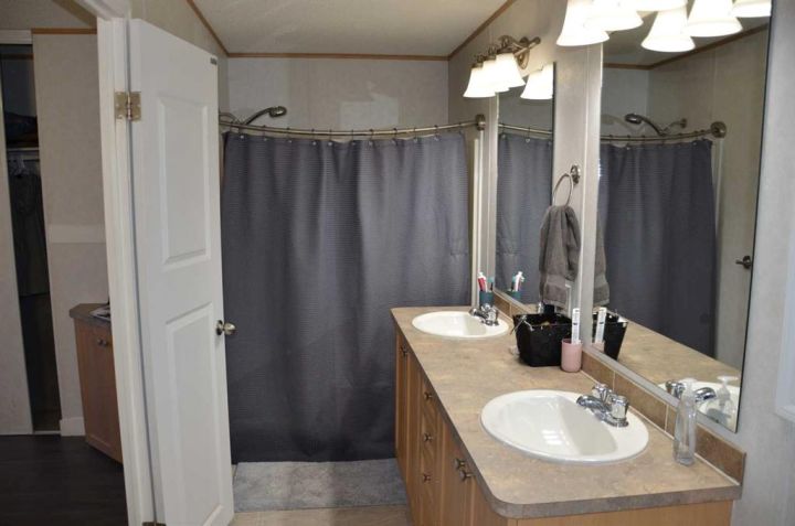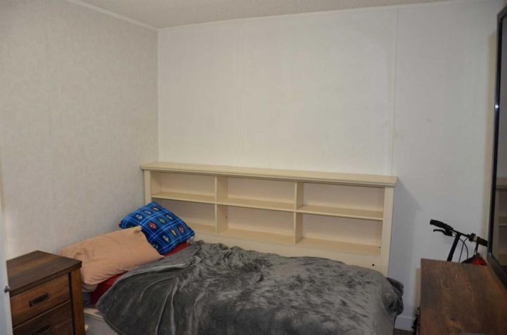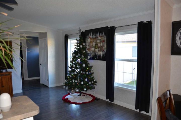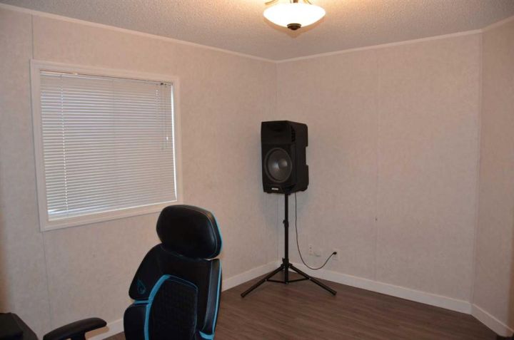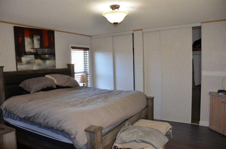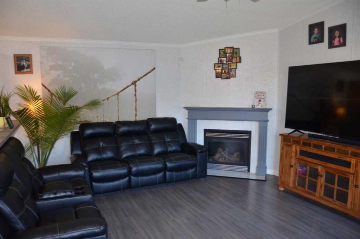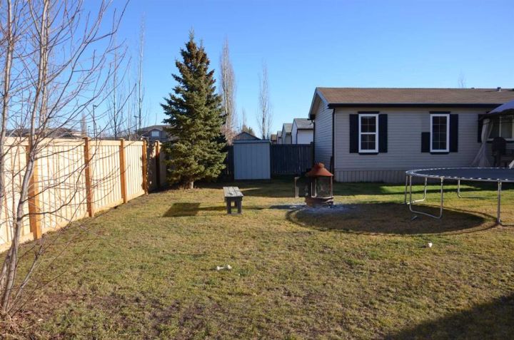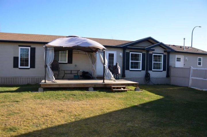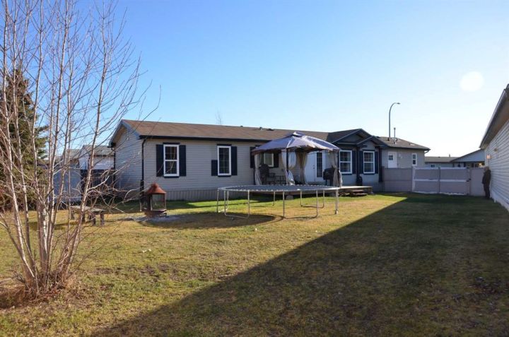 Located on its own large, pie shaped lot with no neighbors behind. This well kept 20 foot wide mobile home had 4 bedrooms and 2 bathrooms. Wide open floor plan with vaulted ceilings. Master bedroom has 4 piece ensuite and his and hers closets. New flooring in bedrooms, new toilets, new hot water tank, new stove and dishwasher. Yard is fully fenced with deck, small shed, and firepit area.