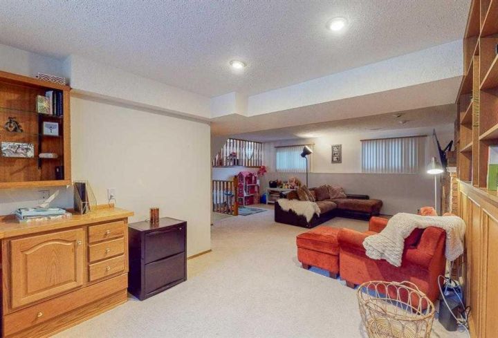 This spacious four-level split in the quiet, family-friendly neighborhood of Ross Glen offers privacy and convenience, backing onto a green space with a playground and sitting on a large lot that feels like you have no neighbors; the open-concept main floor features a bright living room with oversized windows, a dining area, and a kitchen with oak cabinetry and full appliances, while upstairs you’ll find the primary bedroom with a 2-piece ensuite, two additional bedrooms, and a 4-piece bath; the third level boasts a cozy family room with a brick gas fireplace, an office with custom built-ins, another 2-piece bath with plumbing ready for a shower, and access to a garage currently used as a music studio but easily converted back; the fourth level adds versatility with laundry, a wet bar, abundant cabinetry, an extra bedroom, and ample storage; outside, the fully fenced yard is a private oasis with beautiful landscaping, a large covered patio, and two sheds, plus extensive parking options including a heated/insulated garage, RV parking, and two extra pads; updates include a high-efficiency furnace (2010), shingles (2006), and mostly new windows, all within minutes of the mall, schools, playgrounds, coulees, and Medicine Hat’s trail system.
