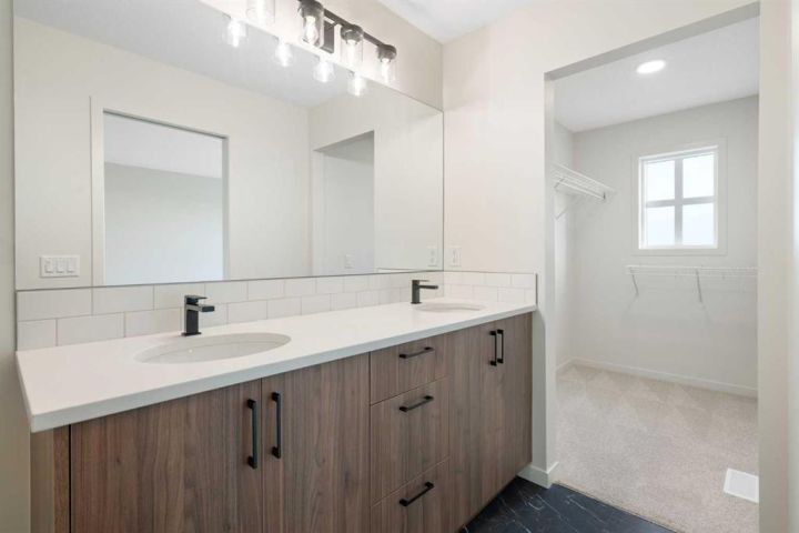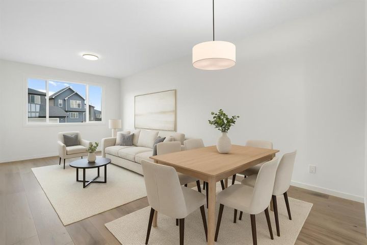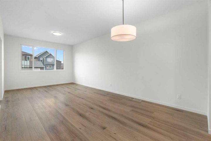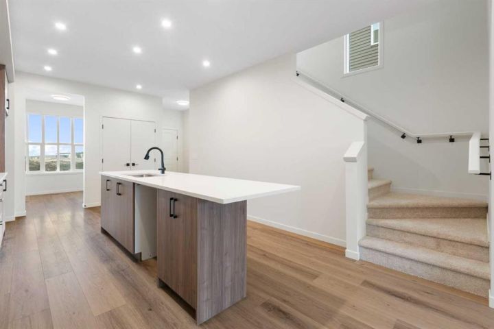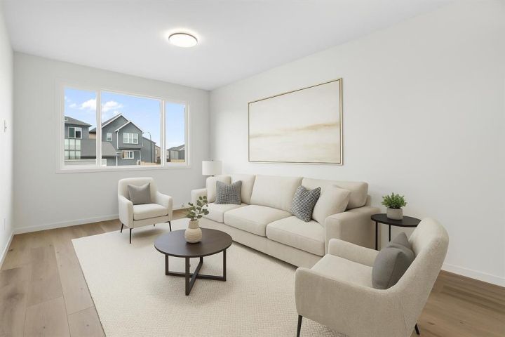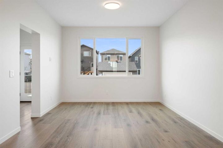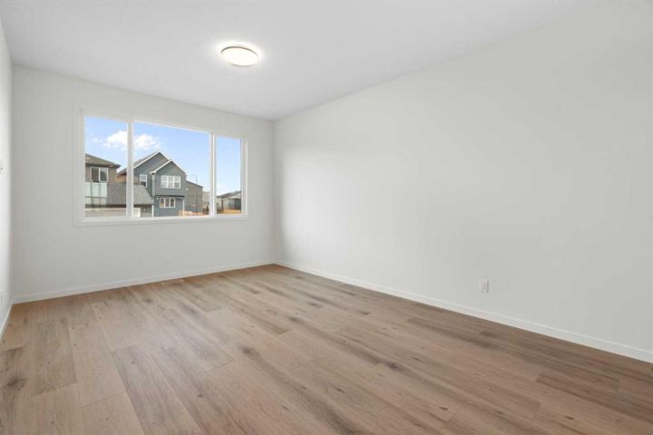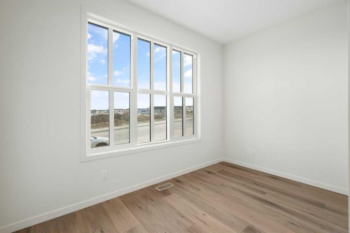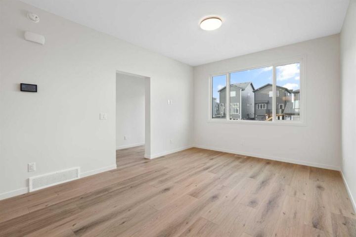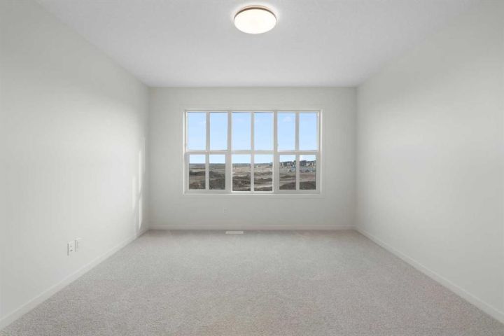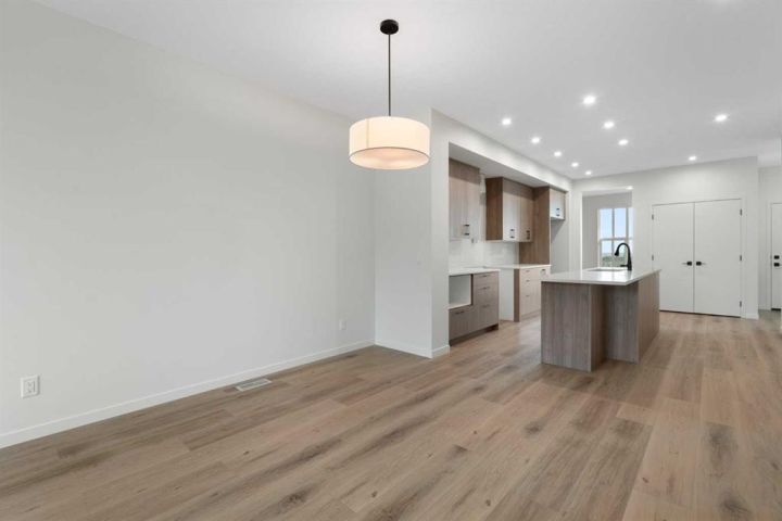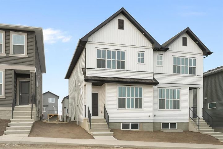 Welcome to Glacier Ridge where elevated design meets everyday comfort in this brand-new Cedarglen Homes semi-detached residence. This home is crafted for the rhythm of modern living - open, inviting, and effortlessly functional. Step inside and feel the flow immediately - a bright front foyer ushers you toward a sunlit flex room, ready to adapt to your lifestyle. Imagine a quiet home office for focused mornings or a cozy reading nook that soaks in the afternoon light. Beyond, the heart of the home unfolds - a stunning open-concept kitchen with a generous island, sleek quartz countertops, and rich walnut-style cabinetry that anchors the space in warmth and sophistication. Matte black finishes add a contemporary edge, while the seamless connection between kitchen, dining nook, and great room makes entertaining a joy. Whether it’s a lively dinner with friends or a relaxed Sunday breakfast, this is where moments naturally gather. Off the great room, the mudroom offers both practicality and charm - with a convenient half bath and access to the rear deck, perfect for summer BBQs or evening unwinds. Beyond the deck, you’ll find a parking pad ready for your future garage - and a side entrance to the unfinished basement, a rare opportunity to customize or add a secondary suite down the line (subject to city approval and permitting). Upstairs, the thoughtful design continues. A central bonus room offers a casual retreat - movie nights, game days, or a play space that keeps the energy upstairs. The primary suite sits privately at the back, complete with a walk-in closet and a serene 4-piece ensuite where you can recharge in peace. Two additional bedrooms share a stylish full bath, while the conveniently placed laundry room keeps chores close at hand. Every detail here feels intuitive - designed to simplify daily life without sacrificing beauty. And the finishing touches? Luxury vinyl plank flooring on the main, quartz countertops throughout, LVT in baths and laundry, and a $4,096 appliance allowance for your fridge and stove selection - ensuring the final look reflects your style. The microwave, range hood, and dishwasher are already chosen for you, and you’ll receive a $1,000 landscaping rebate when you complete your outdoor oasis within a year of possession. This is more than a new home - it’s a fresh start in one of Calgary’s most exciting new communities. Glacier Ridge offers the perfect blend of modern architecture, community connection, and natural beauty - all waiting to be experienced. Make it yours and start building your next chapter in Glacier Ridge today. *Some photos are virtually staged.*
