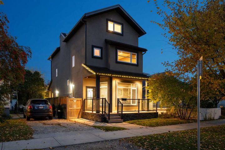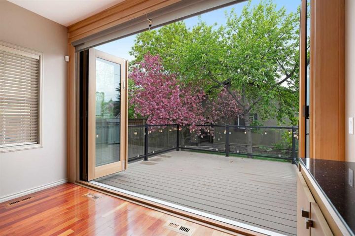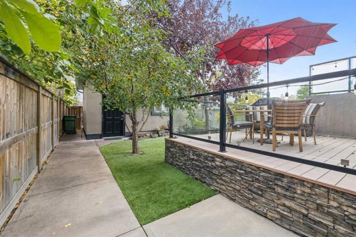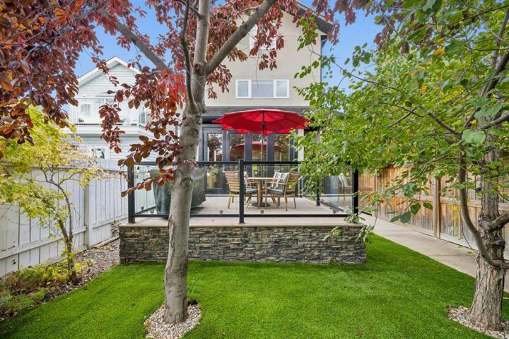 Nestled on a quiet tree-lined street in the long-established community of Capitol Hill, this European inspired 3 bedroom home with private SOUTH FACING back yard offers over 2700 sq ft of developed living space. The main level presents glossy Brazilian cherry Jatoba hardwood floors, high ceilings & is illuminated with recessed lighting, showcasing the front living room with feature fireplace, dining area with stylish light fixture & gorgeous kitchen that’s tastefully finished with solid wood hand build cabinetry, island, granite counter tops, top of the line stainless steel appliances, cozy breakfast nook & folding Tesoro door system opening to the south facing, private composite deck. A 2 piece powder room completes the main level. A custom staircase with auto LED lighting leads to the second level (also adorned with Jatoba hardwood) that hosts 2 spacious bedrooms, a 4 piece bath with Fiat steam shower & laundry room with sink. The newly renovated primary suite encompasses the entire third level & is a true private oasis. Features include a huge bedroom with vaulted ceiling & skylights, to-die-for walk-in closet & opulent ensuite with programmable heated tile floors, dual sinks, coffee bar with sink, beverage centre & filtered water station, a walk-in shower, heated air tub with remote & skylights. Basement development comprises of a recreation/media room with custom millwork, porcelain tile flooring, 2 built-in entertainment centres & electric fireplace. A large flex space with custom hand made closet could be used as a home gym area or studio. Other notable features include fresh paint throughout, upgraded LED lighting with Lutron touch dimmer switches, built-in ceiling speakers, tankless hot water tank, central air conditioning, newer modulating furnace, security system & 50 year rubber roof. Outside, enjoy the private south facing professionally landscaped yard with mature flowering trees, rundle rock garden & maintenance free astro-turf. Parking is a breeze with a heated, insulated, fully finished garage with new door & lift hardware. The prime location can’t be beat – close to popular neighbourhood amenities such as Earl’s, Starbucks, Weed’s Café, Edelweiss Village, Confederation Park, two community centres, shopping, exceptional schools, public transit, SAIT & U of C & and whether you’re walking, taking transit or Uber, its an easy commute to the downtown core. Trendy Kensington with Riley Park, shopping & patios is also within walking distance.