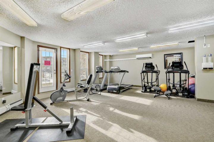 Inverness Estates is a sought-after condominium community in Grande Prairie. Featuring an attractive floor plan including a large master with a walk-through closet to the full bath. The kitchen is attractive and convenient with stainless steel appliances and an eating bar. This open floor plan allows ample space with a combined dining and living area and access to the balcony. Enjoy summer evenings on your balcony, where grilling is made easy with a gas hookup for your bbq. This unit comes with 2 side-by-side, titled underground parking stalls with close proximity to the elevators. This complex offers a workout facility, amenities room that can be booked for large family gatherings, and a guest suite that can be reserved when family wants to stay and visit. Professional management ensures that this complex remains Grande Prairie’s premier condominium community. Whether you’re looking for your new home or for an investment opportunity, book your viewing today!