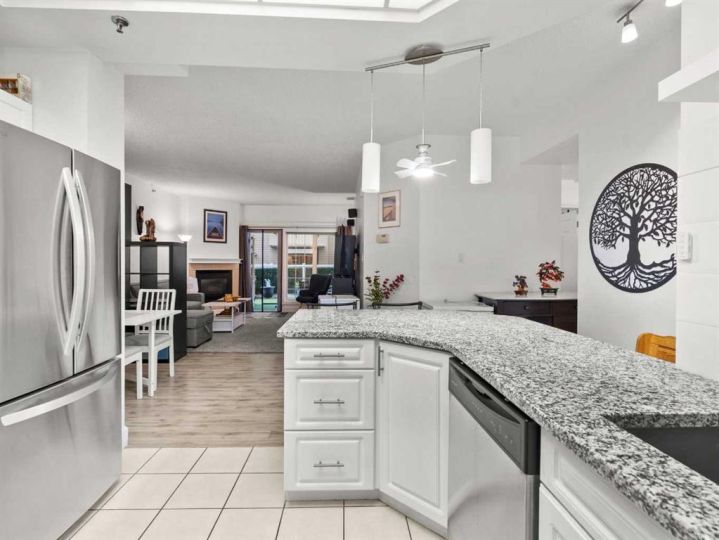 This spacious Newbury floorplan features an open-concept kitchen with granite counters, stainless steel appliances, white shaker cabinets, pantry, and peninsula seating. The bright great room offers a dining area, cozy gas fireplace, and direct access to an incredible west facing, oversized dog friendly patio; a true outdoor oasis perfect for entertaining, relaxing, or letting your pup enjoy the sunshine. The oversized primary suite impresses with patio access, a walk-in closet with custom organizers, and a granite-topped ensuite with soaking tub. A generous second bedroom, full bath with walk-in shower, in-suite laundry, updated flooring, and titled underground parking complete this urban retreat. Quiet, concrete construction — just steps from Mount Royal Village, transit, dining, and entertainment. Your Beltline lifestyle starts here!