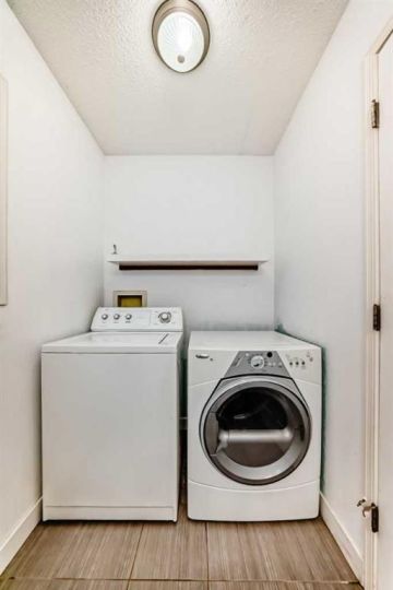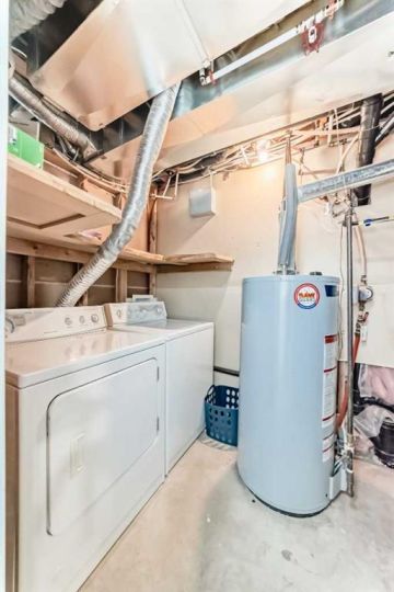 Dishwasher, Dryer, Electric Stove, Range Hood, Refrigerator, Washer