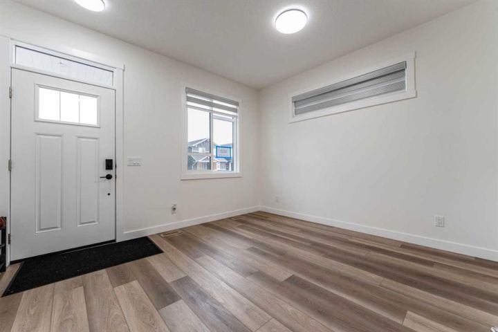 Welcome to this meticulously cared-for residence located in a desirable Airdrie community, offering a perfect blend of comfort and convenience. This home sits on a traditional back-laned lot and boasts a well-manicured yard that shows true pride of ownership. The property features a convenient concrete parking pad accessible from the rear lane. Inside, the main floor is designed for modern living. You’ll find a bright, dedicated office space—ideal for remote work or a quiet den—alongside the spacious living and dining areas and a 2-piece washroom. The home offers a total of 3 spacious bedrooms upstairs and 2.5 bathrooms, providing ample space for the whole family. The attention to detail continues into the fully utilized basement. While not a legal suite, the basement offers exceptional functionality, featuring an additional bedroom and a highly desirable separate laundry facility. Location is everything! Commuters will appreciate the immediate and easy access to major highways, streamlining your travel into Calgary or surrounding areas. This home is truly turn-key and ready for its new owners. Don't miss the opportunity to own this highly maintained property!