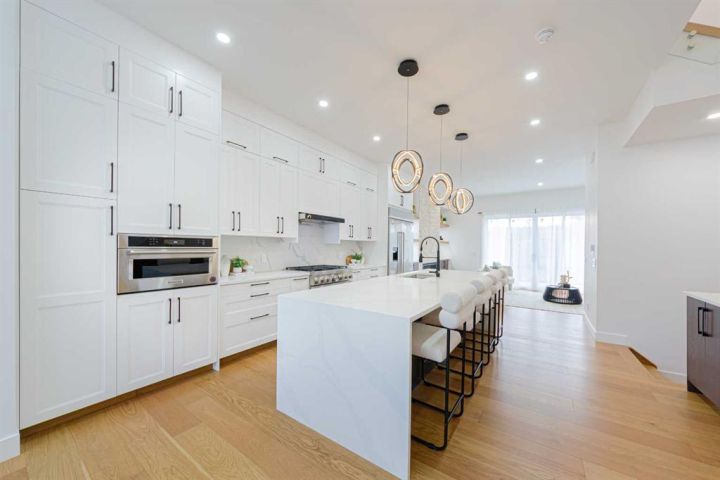 Welcome to this stunning semi-detached 2 storey in the highly sought-after community of Montgomery just minutes from the UofC, Foothills Hospital, Market Mall, Bow River, and a variety of local shops & restaurants! With over 2000sqft, this home is built with quality, luxury and stylish, and combines of convenience and modern living. Steps inside to discover a thoughtfully designed layout with high-end finishes throughout. The main floor features an airy open-concept design, highlighted by a chef’s kitchen with a large island, a bright and inviting family room that leads to the balcony with mountain views! Up along the unique glass railing on stairway, you will find 3 grand sized bedrooms, a laundry room and 2 full bathrooms. The primary suite is a true retreat, packed with mountain views, a walk-in closet and a luxurious ensuite featuring a double vanity, walk-in shower, and a soaking tub. Both main and upper floor has 10ft ceilings! The walk-out basement is a self contained legal suite(approved with permits and subject to final inspection), offering a large recreation/living area, a full kitchen, two bedrooms, and a full bathroom—perfect for your extended family or rental potential! Extras of this home including AC, KitchenAid appliances package, all solid interior doors, intelligent toilet, in-floor heating in basement & heated floors in master ensuite, sunny south facing balcony & backyard...all finished with thoughtfully DESIGNER TOUCHES! Don't miss this gem!