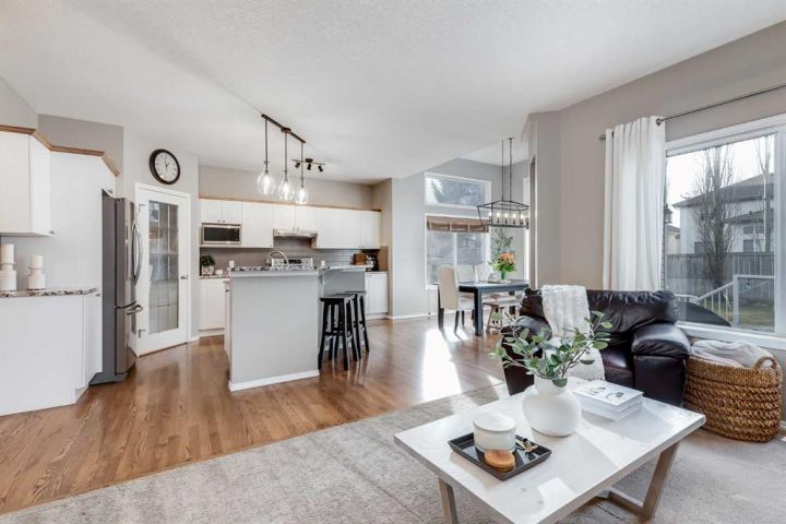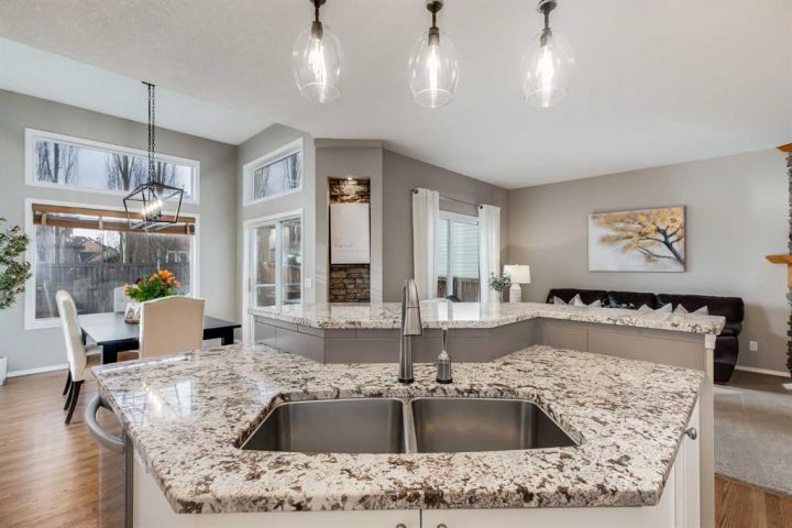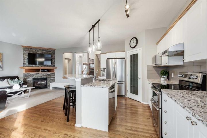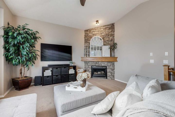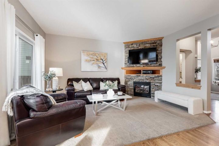 Welcome to this fully finished detached home with over 2,700 sqft of total living space, nestled in the vibrant, family-friendly community of Panorama Estates. The moment you arrive, manicured landscaping and stunning curb appeal greet you. Step into a soaring vaulted foyer filled with natural light, leading to a bright, open main floor with hardwood floors, upgraded lighting, and 9 ft ceilings that rise to 11 ft in the dining area surrounded by windows. The kitchen serves as the perfect gathering space, offering granite countertops, a large island with seating, modern fixtures, and a generous walk-through pantry. The living room is anchored by a welcoming gas fireplace with a beautiful stone accent wall. Upstairs, you’ll find three spacious bedrooms, including the primary with a newly renovated ensuite complete with a luxurious soaker tub and a spacious walk-in closet. A large bonus room with vaulted ceilings and a stone-faced gas fireplace provides the perfect space for movie nights or relaxing with loved ones, and the renovated full bathroom on this level adds a fresh, modern feel. The fully finished basement expands your living space with a large recreation room featuring the home’s third gas fireplace with a stone accent wall and built-in shelving. A custom dry bar with a mini fridge, dishwasher, and built-in cabinetry makes entertaining easy, while a flexible area serves perfectly as a home office or gym. This level also includes a convenient half bathroom. Step outside to the west-facing backyard, complete with a spacious deck with glass railing, a paved patio, generous green space with mature trees, beautiful landscaping, and a cozy fire pit ideal for great summer nights. Additional features include A/C throughout, a 50-gallon water tank, new roof and siding (2025) and a double-attached heated garage for year-round comfort. Panorama Estates is a well-planned community known for its natural beauty, parks, lakes, pathways, nearby schools, plentiful shopping, cafés, and essential services. Located directly across from Buffalo Rubbing Stone Park, this home also provides quick access to recreation centres, fitness facilities, and the impressive 36-hole Country Hills Golf Course, offering a lifestyle defined by both convenience and connection. This isn’t just a house, it’s where your family’s next chapter begins. Book your showing today!