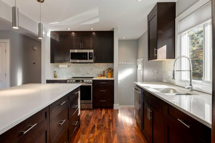 Beautifully Renovated Bungalow in the Heart of Desirable Collingwood. Welcome to this stunning 4-bedroom detached bungalow offering over 2100 sqft of total living space, perfectly situated in the highly sought-after community of Collingwood. Completely renovated, this home combines timeless charm with modern luxury. Step inside to discover a bright and spacious open-concept layout featuring walnut hardwood floors and quartz finishes throughout. The large kitchen is a chef’s dream, complete with stainless steel appliances, a massive island, and ample cabinetry—ideal for both entertaining and everyday living. The main bathroom showcases travertine floors and surround, and includes a large soaker tub/shower combination, creating a relaxing spa-like retreat. The fully developed basement expands your living space with a large bedroom, a 3-piece bathroom with travertine floors, built-in cabinets, and vanity, plus a spacious rec and flex room—perfect for family gatherings, a home gym, or an office setup. Enjoy the outdoors in your large backyard featuring a concrete patio, ideal for summer barbecues or quiet evenings. Located mid-block among detached single-family homes with a restrictive covenant ensuring the integrity of the neighborhood, this property offers peace and exclusivity. You’ll love the convenience of being walking distance to schools of all levels, the Calgary Winter Club, and just a minute’s walk to the 19th Street off-leash dog park. Plus, you’re close to the University of Calgary, SAIT, parks, playgrounds, shopping, golf courses, Confederation Park, and public transportation. This home truly has it all—a rare opportunity to own a beautifully updated bungalow with an attached garage in one of Calgary’s most desirable communities. Come see it today and fall in love with Collingwood living!