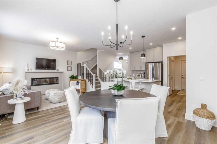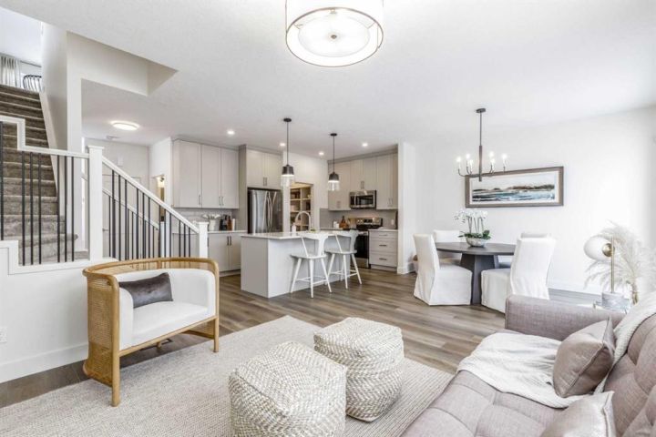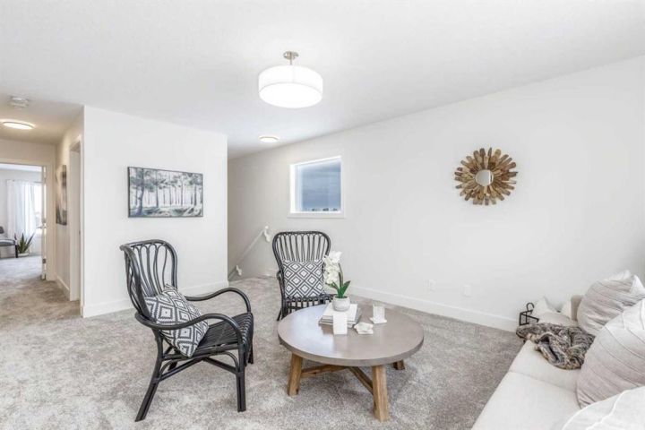 ** Beautiful Community of Rivercrest** West facing back yard** With easy access to Highway 22 and Highway 1, this growing community of Rivercrest is the perfect place to make it home for your family. Here you can breathe easy, enjoying the natural beauty of the area and the town’s many amenities while staying connected to everything Calgary and the Rocky Mountains has to offer. Up and coming Elementary School will be in a short walking distance!! Framing is completed and insulation will be starting shortly. You still have time to make to make this your home by making interior color selections. This 3-bedroom, 2.5 bath, with bonus room 2-storey features 1,884 sq.ft. of spacious living with exceptional quality finishes that only a Janssen Home can bring! Main floor features living room with Gas Fireplace, a kitchen with walk through pantry/mudroom, nook eating area opening onto a 12’ x10’ deck. Upper level features a primary retreat with walk-in closet that adjoins by pocket door to a spacious laundry room with lower cabinet and undermount deep sink, 5-pce ensuite with dual undermount sinks, soaker-tub & walk-in shower, 2 additional bedrooms off the bonusroom and an additional 4-pce bath. Upgraded features include: 9' main-floor walls, painted railings & metal spindles, luxury vinyl plank flooring throughout main level, tile in laundry & upper baths. Full height kitchen cabinets with soft close doors/drawers & full extension drawer glides, quartz counters, undermount sink plus 5 S/S appliance package which includes gas range and range hood!. Built on Site solid shelves. LoE Argon slider windows, R-50 attic insulation, high efficient furnace w/programmable thermostat & drip humidifier, hot water on demand and 4 pc R/I plumbing in basement. Spacious covered porch at front, finished deck at back w/aluminum railing & steps to grade. Warranty includes 1 yr comprehensive, 2 yrs heating, electric, plumbing, 5 yrs building envelope, 10 yrs structural. *Note - Interior and Exterior photos are from previous builds*.