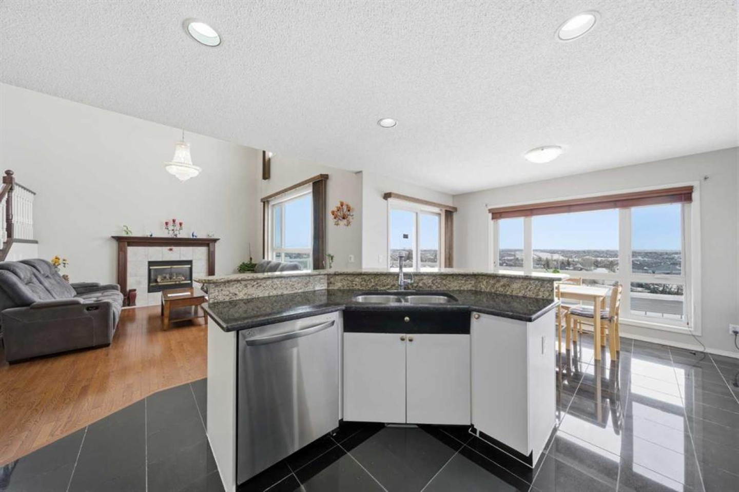 Welcome to 62 Hampstead Gardens NW — a beautiful 2-storey walkout home in the Hamptons with spectacular panoramic views. This home boasts multiple updates, including, new roof, furnace, water tank and reverse osmosis system (all 2015), and new upstairs windows in 2023. The main floor features hardwood flooring, a bright open-to-above living room with a gas fireplace, a formal dining area, and large windows that fill the home with natural light. The updated kitchen offers granite countertops, stainless steel appliances, a corner pantry, and a cozy breakfast nook with a French door leading to the expansive updated deck with glass surround. Upstairs you’ll find three spacious bedrooms, including a primary suite with an updated ensuite featuring granite counters, a corner soaker tub, and a separate shower. The fully developed walkout basement includes a large rec room, office space, two additional bedrooms, a full bathroom, and direct access to the backyard. Additional updates include newer windows and modern finishes throughout. Located on a quiet street close to schools, parks, golf, and amenities — this is an ideal family home in one of Calgary’s most desirable communities.