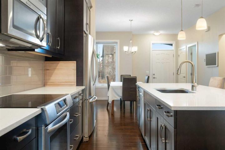 13 Marquis Place SE – Four-Season Lake Living in Mahogany Welcome to 13 Marquis Place SE, a charming family home perfectly positioned at the start of a quiet cul-de-sac in one of Calgary’s most celebrated lake communities. This residence blends modern comfort, community connection, and year-round recreation in a setting that truly captures the spirit of Mahogany. Step outside your front door and enjoy a short walk to Mahogany’s beautiful Nature Wetlands, both nearby schools, and exclusive resident access to Mahogany Lake—a true four-season playground. Spend summers swimming, paddleboarding, kayaking, and soaking up the sun on the beach, then embrace winter with skating, hockey, ice fishing, and cozy evenings by the community firepits during festive gatherings. Inside, the home’s bright, open-concept main floor is designed for modern family living, featuring seamless flow between the kitchen, dining, and living areas—ideal for entertaining or relaxing nights at home. A front den just off the entryway offers flexible use as a home office, playroom, or quiet reading nook. Upstairs, discover three spacious bedrooms, including a HUGE primary suite with a five-piece ensuite bath, alongside a second four-piece bathroom. Matching finishes throughout—including maple cabinetry and quartz countertops—create a cohesive, elevated feel that blends style with everyday function. Outside, the west-facing pie-lot backyard is landscaped and ready for your personal touch—perfect for enjoying long summer evenings or gathering with family and friends. The oversized double garage adds exceptional versatility for hobbyists, car enthusiasts, or additional storage, offering true year-round functionality. Life in Mahogany means more than just a beautiful home—it’s a lifestyle. Enjoy over 22 km of scenic pathways, the vibrant Beach Club, and quick access to Seton’s shopping, restaurants, YMCA, and the South Health Campus—all just minutes away. If you’ve been searching for the perfect balance of tranquility, community, and four-season fun, 13 Marquis Place SE delivers the very best of Mahogany living—where every day feels like a getaway.