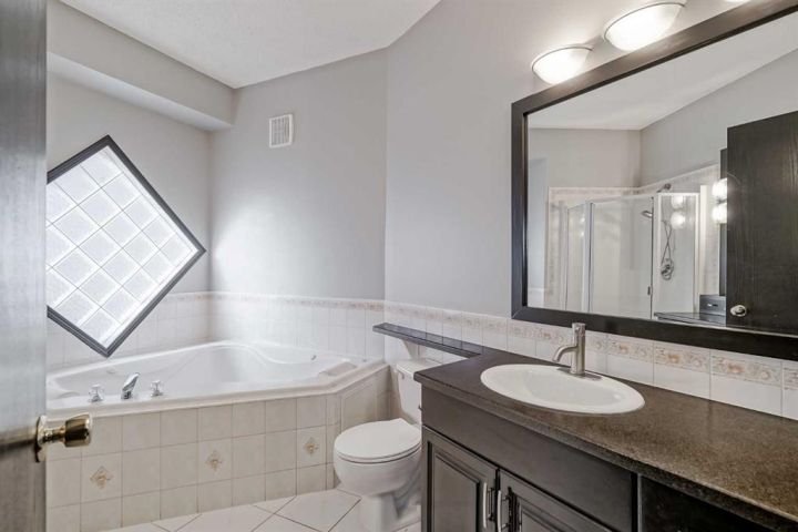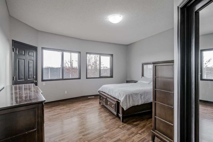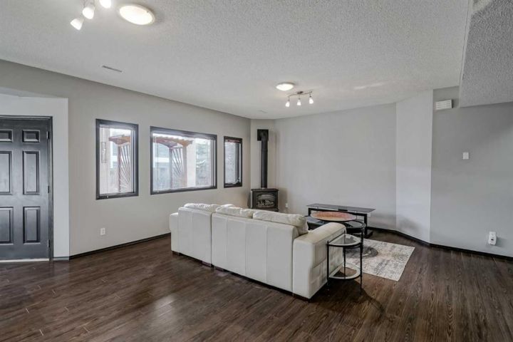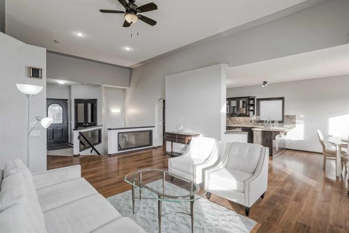 **OPEN HOUSE SAT NOV 22 & SUN NOV 23 12PM-4PM** Get excited! This fully finished bungalow delivers almost 2800 sqft of developed living space, style, LAKE PRIVILEGES, and the perfect foundation to make it truly your own! From the moment you step inside, the soaring 12' ceilings, rich dark-stained cabinetry and trim, and stylish laminate flooring create an impressive and welcoming atmosphere. **The bright, open kitchen is designed for both cooking and gathering, featuring abundant cabinetry, granite counters, stainless steel appliances, a handy eating bar, and a spacious dining area that flows right out to the deck (12' x 21'). The primary bedroom also offers direct deck access—your own private retreat—with a walk-in closet and a relaxing ensuite complete with corner jetted tub, separate shower, vanity, and makeup desk. A main floor office adds the perfect workspace or flex room. **The walkout basement delivers even more living space, boasting laminate flooring throughout, a cozy family room with a second fireplace, a huge recreation room for entertaining, two additional bedrooms, a full bathroom, and plenty of storage. **Outside, enjoy a beautifully landscaped backyard featuring a patio, shed, RV parking off the back lane, and the added bonus of a double attached front garage. Plus, enjoy peace of mind knowing all Poly-B plumbing has been recently replaced. **This home truly has it all - style, space, upgrades, and an amazing location, ready for your personal touch!**