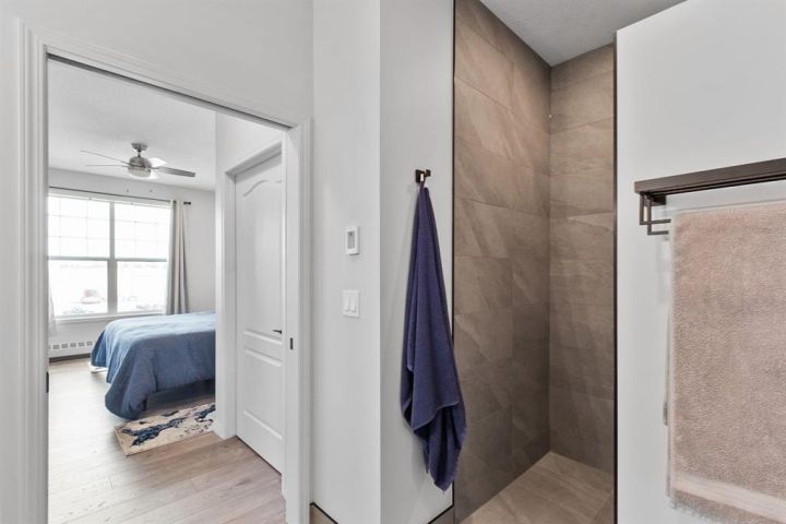 Welcome to this stunning 55+ condo that has been fully renovated from top to bottom! This bright and sunny two-bedroom, two-bathroom home boasts soaring high ceilings, an open-concept layout, and elegant modern finishes throughout. With walk-in showers, there are no concerns for mobility. You will appreciate the huge kitchen which will hold your everyday as well as special occasion dishes. This home features a detached garage, as well as a second, assigned parking stall. All of this is located in a highly sought-after building with exceptional amenities, including management, social spaces, fitness facilities, guest suites and more, this beautiful unit offers the perfect blend of style, comfort, and community. A true must-see!