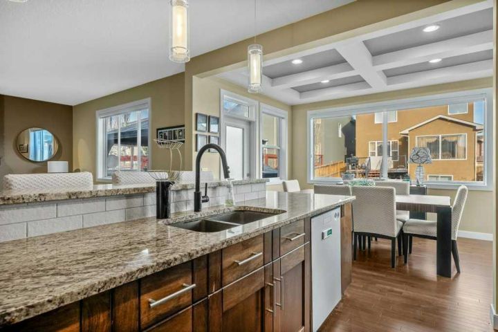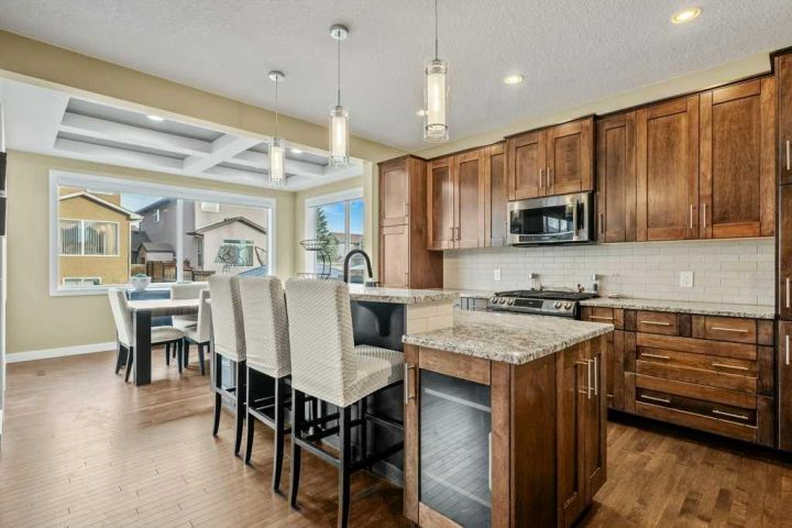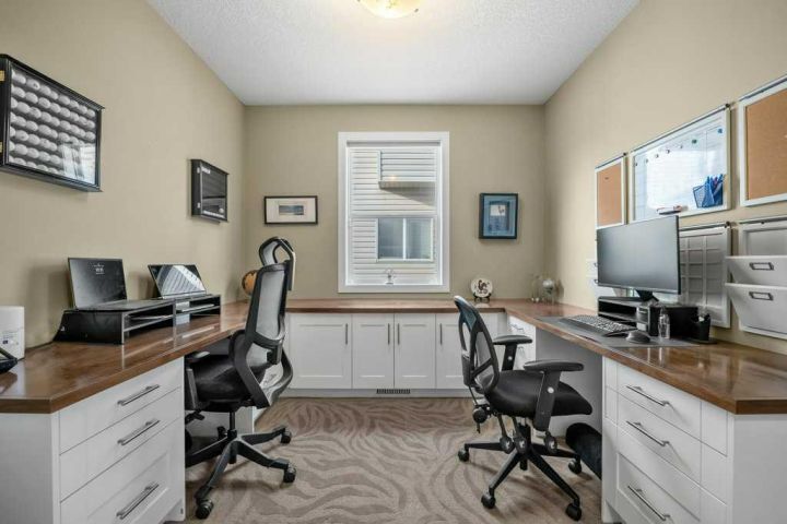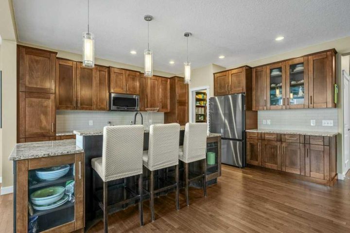 Discover this gorgeous, tastefully updated original owner home in the desirable SW community of Evergreen. Offering 2,469 sqft plus a 1,057 sqft fully developed basement of highly functional living space that will accommodate multiple family configurations. The main floor boasts a superb open great room plan and features 9’ ceilings and exquisite updated espresso hardwood floors. Custom built-in cabinetry is found throughout this beautiful home. The gourmet’s kitchen is fully equipped with ample amounts of shaker style cabinetry, full tile backsplash and rich granite countertops. Updated stainless steel appliances are highlighted by the gas stove. Oversized central island with raised breakfast bar is ideal for casual dining. The large adjacent dining area is delineated by a classic coffered ceiling treatment. The massive living area just off the kitchen is completed by a focal point floor-to-ceiling stone tiled fireplace. French doors open into a versatile office that contains a custom built-in perimeter desk. Great for a home office, crafts or homework. A family sized rear mudroom with enough custom built-ins for everyone’s shoes and coats not to be left on the floor. The walkthrough pantry connects the mudroom and kitchen. Upstairs, you’ll find a spacious bonus room with vaulted ceiling, a beautifully renovated 4-piece bathroom, a convenient, full sized laundry room, and 3 generously sized bedrooms. The oversized primary suite is a true retreat, complete with a lavishly renovated 5-piece ensuite bath featuring a free-standing soaker tub, separate tile and glass shower, heated tile floors, custom dual mirrors and dual sinks plus a quartz topped vanity. A large walk-in closet with wood organizers completes the space. The fully finished lower level is designed for comfort and entertainment. You will be spending a lot of time in the enormous family/rec room watching the big game or blockbuster movies in 7.1 surround sound. It also includes a 4th bedroom, another updated bathroom plus a dedicated gym area that can be closed off with a custom folding nano style door system. This home is a must-see for those seeking a spacious, updated, estate style home that ideal home for entertaining and large family gatherings. Additional updated include roof (2024), A/C, furnace (2020) water tank (2017), hardwood floor (2024) carpet and underlay upstairs (2025). Minutes to breathtaking Fish Creek Provincial Park, schools, shopping, entertainment and easy access to major roadways. Nothing to do but move in and enjoy!